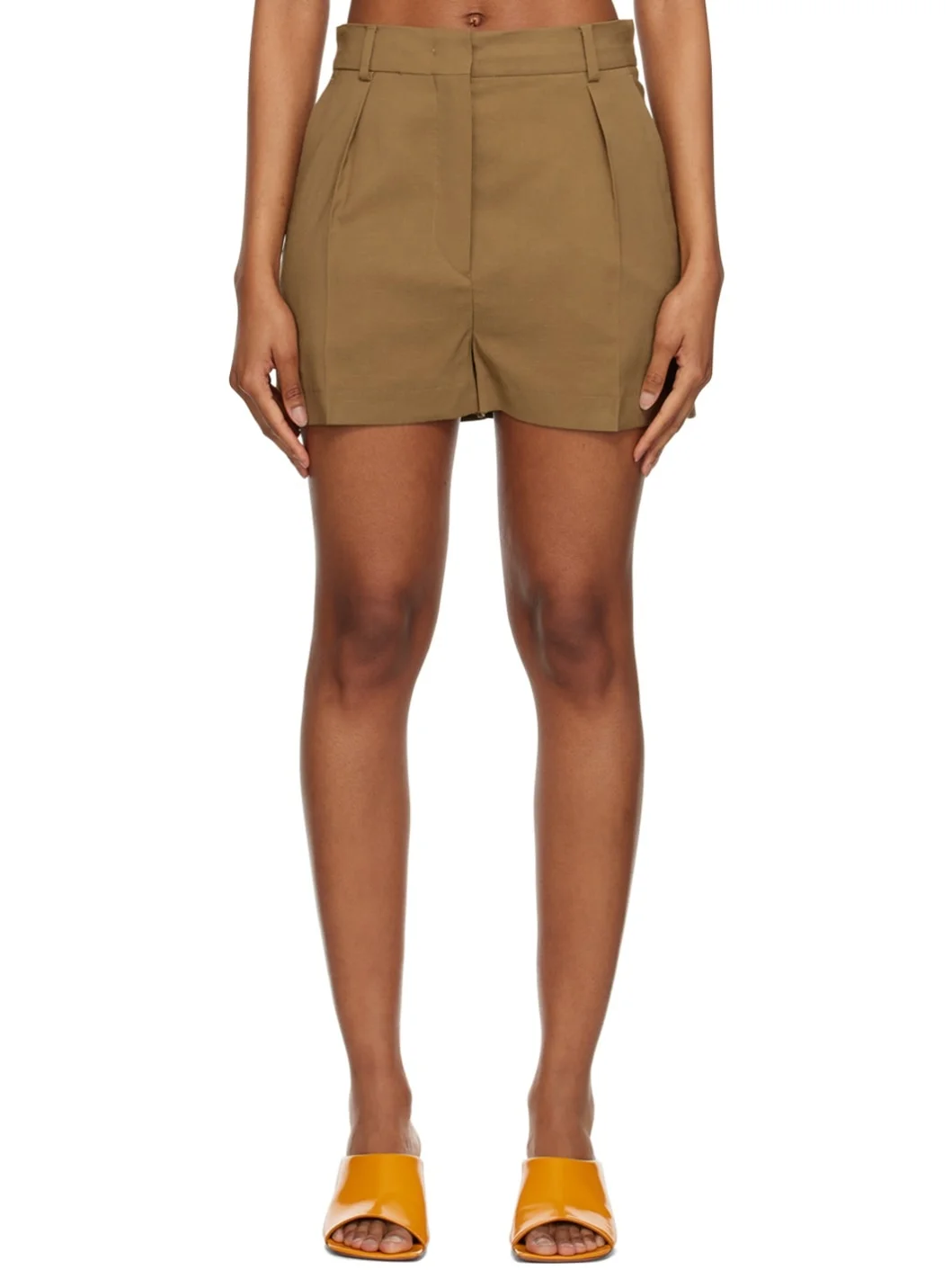 Wide-leg plain-woven stretch slub viscose shorts. · Low-rise · Belt loops · Four-pocket styling · Zip-fly · Pleats at front Supplier color: Hazelnut brown Body: 98% viscose, 2% elastane. Lining: 100% cotton. Made in Poland 231301F088000