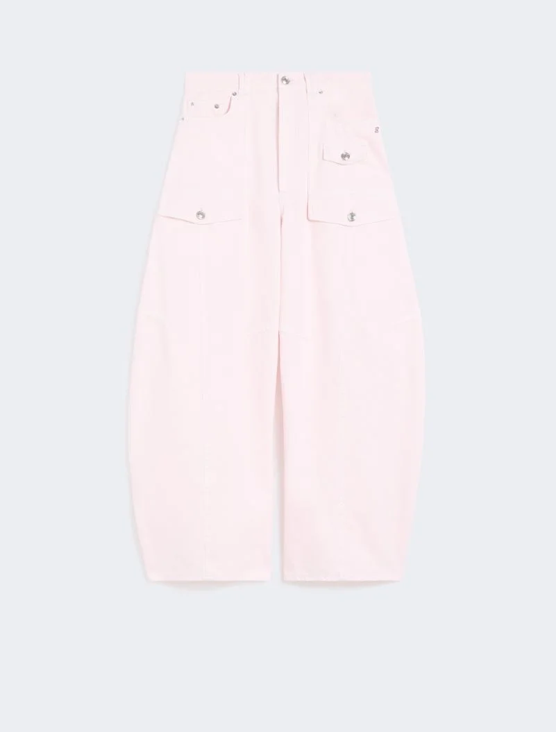 Low-rise, dropped-crotch trousers featuring large utility-style pockets and a curved leg cut. The branded metal buttons add a casual touch. Tone-on-tone stitching motif that highlights the constructive seams and darts. - Garment-washed ecru bull trousers - Vertical darts and tucks at the front - Curved leg cut - Branded label and metal buttons - Regular fit Composition and Care 100% cotton. Machine wash cold delicate cycle; do not bleach; do not tumble dry; line drying in the shade; cool iron; do not dry clean.; wash the garment while it is fastened.; turn the articles inside out before washing.; dyed article. the unevennes of the dye and the pressing form its characteristic.; this item may leave colour stains on brightly-coloured garments.; contains non-textile parts of animal origin. Distributed by Max Mara S.r.l., registered office in Reggio Emilia (Italy), Via Giulia Maramotti 4, 42124
