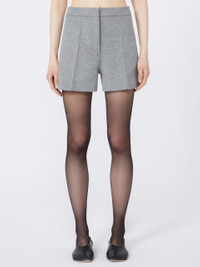 DETAILS Tailored shorts in soft pure wool broadcloth. The low-rise waist and pressed pleat detail are inspired by clean-cut mannish models. Shorts in double-faced pure wool fabric Regular fit Low waist In-seam side pockets and welt rear pockets Pressed pleat detail on the front and back Regular fit COMPOSITION AND CARE Fabric 100% virgin wool; - except joining thread; lining 100% cotton. Do not wash; do not bleach; do not tumble dry; cool iron; professionally dry clean perchloroethylene - mild process; do not wet clean.; wash the garment while it is fastened. Distributed by Max Mara S.r.l., registered office in Reggio Emilia (Italy), Via Giulia Maramotti 4, 42124 (IT)