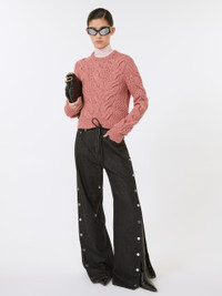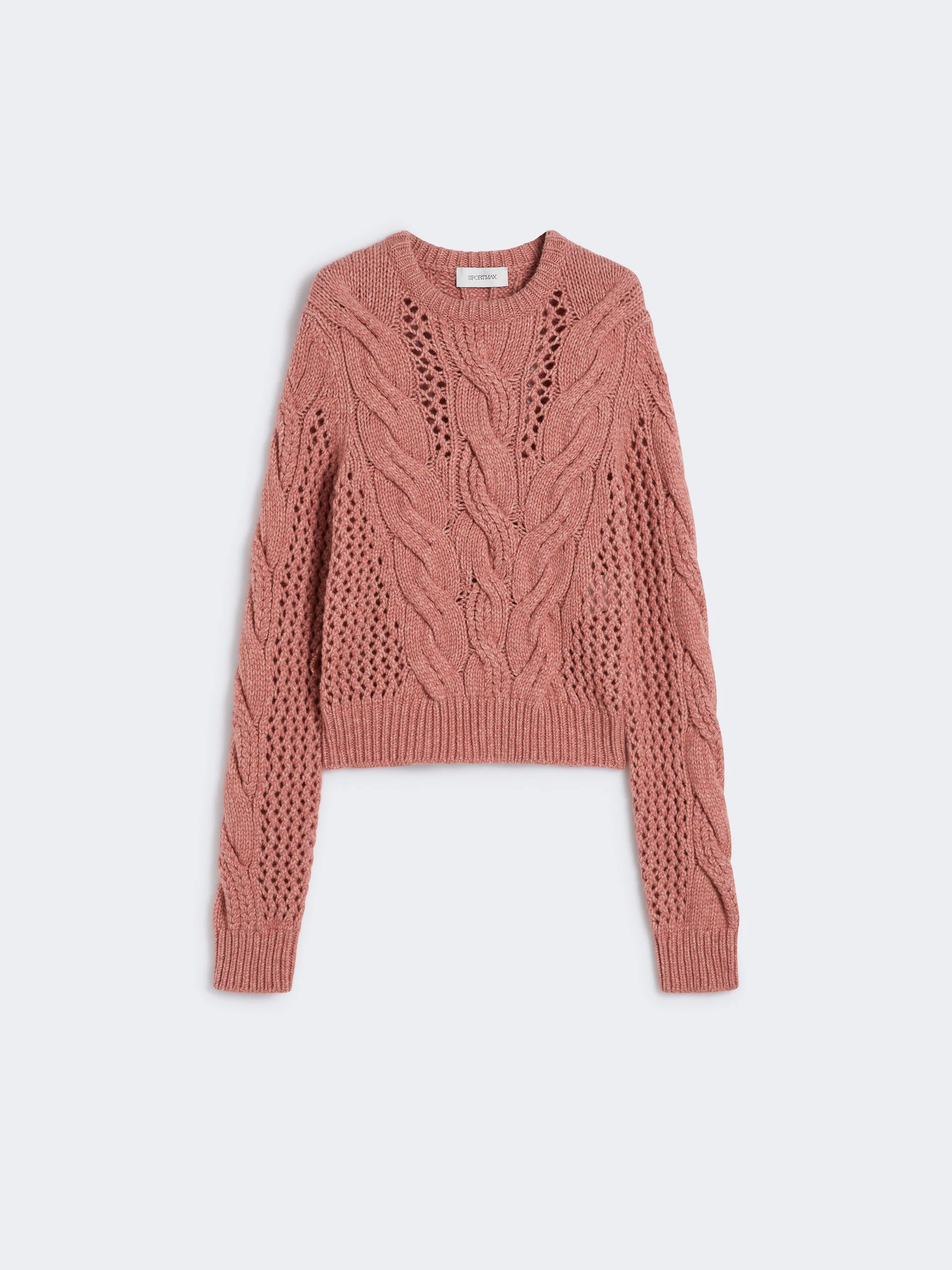 DETAILS Soft, warm wool blend yarn jumper with openwork cable knit on the body and sleeves. Ribbed details on the hem and cuffs Wool-blend jumper Regular fit Rounded neckline Cable knit and openwork stitch motif on the body and sleeves Ribbed hem and cuffs Regular fit COMPOSITION AND CARE 70% wool, 30% polyamide. Do not wash; do not bleach; do not tumble dry; cool iron; professionally dry clean perchloroethylene - mild process; do not wet clean.; iron with a cloth between. Distributed by Max Mara S.r.l., registered office in Reggio Emilia (Italy), Via Giulia Maramotti 4, 42124 (IT)