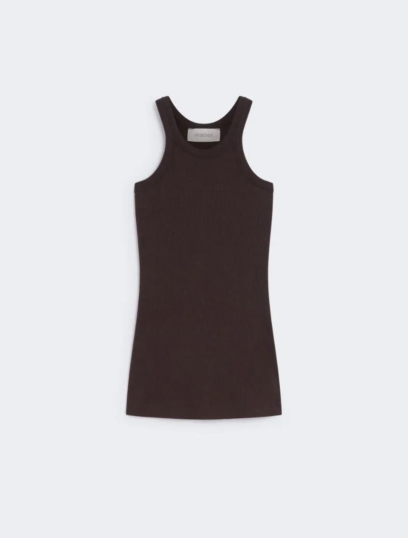 Iconic design tank top with a slightly halter collar. Crafted from stretch cotton and silk for a more refined look. - Stretch cotton and silk knit tank top - Fitted - Halter neck - Ribbed trim edges - Fit Composition and Care 67% cotton, 30% silk, 3% elastane. Hand wash cold (40°c max); do not bleach; do not tumble dry; drip line drying in the shade; cool iron; professionally dry clean perchloroethylene - mild process; do not wet clean.; iron with a cloth between.; using neutral detergent.; don’t rub.; turn the articles inside out before washing.; to be ironed on reverse. Distributed by Max Mara S.r.l., registered office in Reggio Emilia (Italy), Via Giulia Maramotti 4, 42124