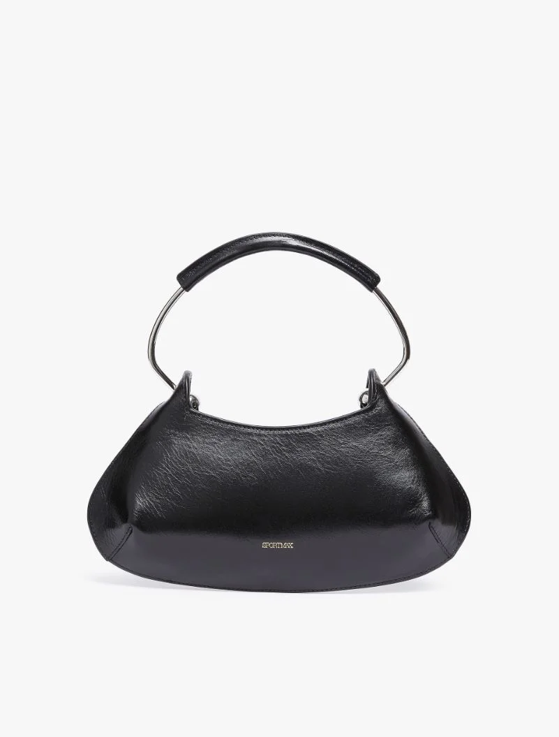 The Caju bag’s iconic form, in a mini version: its rounded lines are accompanied by a metallic detail on the handle that recalls the shape of piercings. Gold-finish front logo. - Calfskin mini-bag with a vegetable-tanned semi-gloss finish - Crescent shape with piercing-effect spheres - Metallic, piercing-effect spheres with a shiny palladium finish - Zip fastening - Measurements: 32 x 30 cm Composition and Care Handbag in cattle; with details in metal; lining in 60 nylon, 40 polyurethane. Distributed by Max Mara S.r.l., registered office in Reggio Emilia (Italy), Via Giulia Maramotti 4, 42124