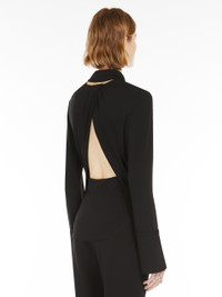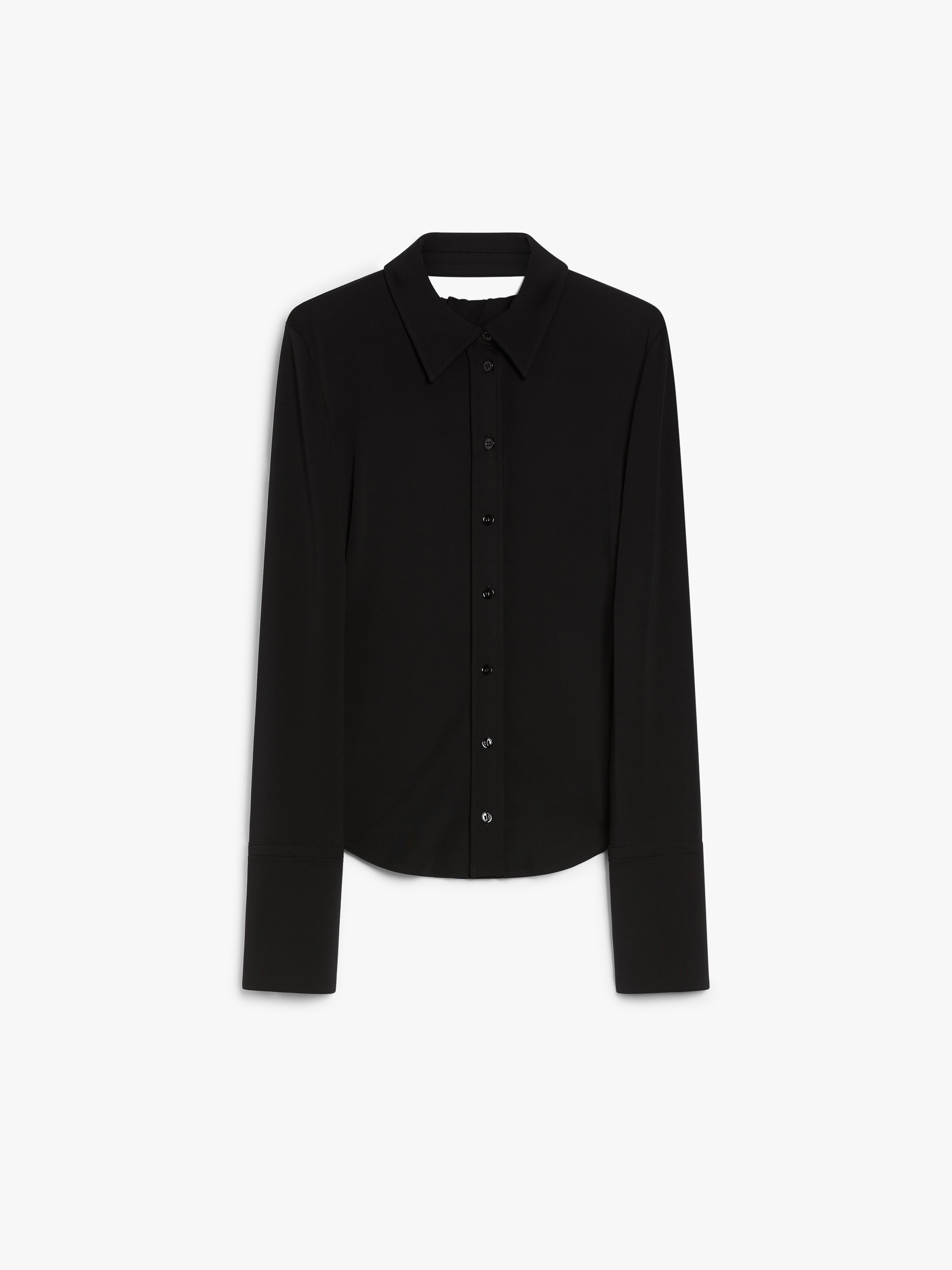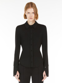 DETAILS Fitted, feminine shirt made of crepe jersey. The construction features a wide opening at the back, with a gathered criss-crossand a rounded hem. Double-height cuffs with a single button and slit. COMPOSITION AND CARE 95% viscose, 5% elastane. Hand wash cold; do not bleach; do not tumble dry; flat drying in the shade; cool iron; professionally dry clean perchloroethylene - mild process; do not wet clean.; iron with a cloth between.; using neutral detergent. Distributed by Max Mara S.r.l., registered office in Reggio Emilia (Italy), Via Giulia Maramotti 4, 42124 (IT)