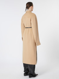 DETAILS Fitted coat in double-sided wool, with darts and shaped sides that define the silhouette. In addition to the fastening, it has a leather belt with an S-shaped buckle that cinches at the waist. Pure wool double drap fitted coat Fitted waist with overlapping side slits Shirt collar and hidden buttoning with visible top metal button Leather belt with S-shaped buckle Shirt cuffs with two buttons Regular fit COMPOSITION AND CARE Coat fabric 100% virgin wool; - except joining thread; with belt in cattle. Coat: do not wash; do not bleach; do not tumble dry; cool iron; professionally dry clean perchloroethylene - mild process; do not wet clean. Belt: do not wash; do not bleach; do not tumble dry; do not iron; do not dry clean; do not wet clean. Distributed by Max Mara S.r.l., registered office in Reggio Emilia (Italy), Via Giulia Maramotti 4, 42124 (IT)