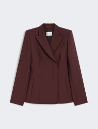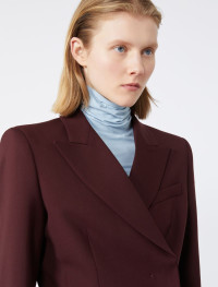Jacket with a tailored, feminine line, with cuts and shapes that highlight the silhouette. The hidden side buttoning evokes men's tailoring styles. Centre-back slit. - Tailored jacket in pure stretch wool gabardine - Fitted - Collar with peak lapels - Hidden buttoning with stitching - Shaped cuts on the sides and back - Lined - Fitted Composition and Care Fabric 95% virgin wool, 5% elastane; lining 70% acetate, 30% polyester; sleeves lining 97% viscose, 3% acetate. Do not wash; do not bleach; do not tumble dry; cool iron; professionally dry clean perchloroethylene - mild process; do not wet clean.; wash the garment while it is fastened. Distributed by Max Mara S.r.l., registered office in Reggio Emilia (Italy), Via Giulia Maramotti 4, 42124