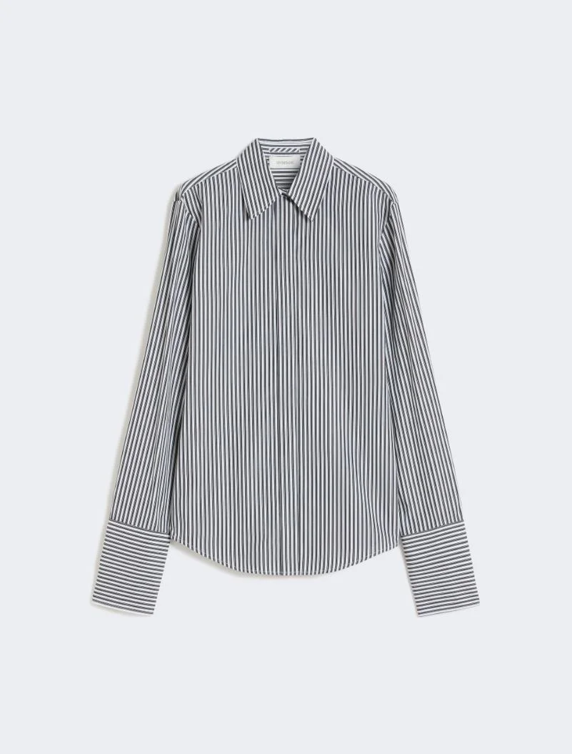 Feminine shirt with the waist emphasised by deep darts on the back. The look is clean, with a concealed button placket and wide cuffs with double buttons. - Pure-cotton shirt - Feminine cut - Shirt collar with concealed buttoning - Deep darts on the back - Double-width cuffs - Regular fit Composition and Care 100% cotton. Machine wash cold delicate cycle; do not bleach; do not tumble dry; line drying in the shade; cool iron; professionally dry clean perchloroethylene - mild process. Distributed by Max Mara S.r.l., registered office in Reggio Emilia (Italy), Via Giulia Maramotti 4, 42124