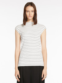 DETAILS Rib-knit jumper made of pure cotton yarn with horizontal stripe pattern. Naturally close-fitting, completed by cap sleeves and a boat neckline. COMPOSITION AND CARE 100% cotton. Hand wash cold; do not bleach; do not tumble dry; flat drying in the shade; cool iron; professionally dry clean perchloroethylene - mild process; do not wet clean.; iron with a cloth between.; using neutral detergent.; don’t iron the labels. Distributed by Max Mara S.r.l., registered office in Reggio Emilia (Italy), Via Giulia Maramotti 4, 42124 (IT)