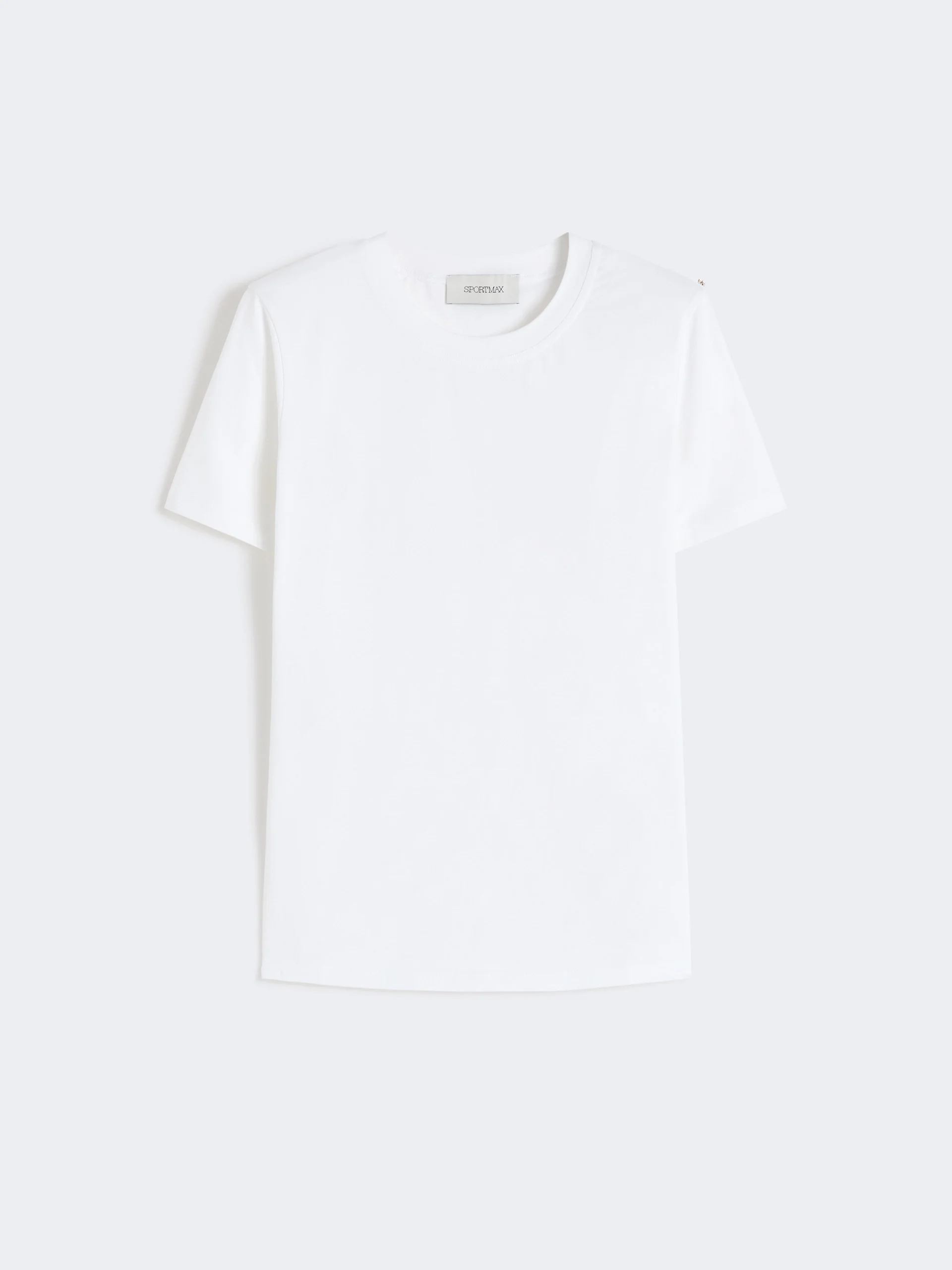 DETAILS T-shirt in silk-feel stretch-cotton jersey. Regular cut, with rounded, rib-trim neckline and short sleeves. - Stretch-cotton silk-feel T-shirt - Round neckline and short sleeves - Ribbed details on the neckline - Regular fit COMPOSITION AND CARE 96% cotton, 4% elastane. Machine wash cold delicate cycle; do not bleach; do not tumble dry; flat drying in the shade; cool iron; professionally dry clean perchloroethylene - mild process; professional wet cleaning - very mild process.; iron with a cloth between.; using neutral detergent. Distributed by Max Mara S.r.l., registered office in Reggio Emilia (Italy), Via Giulia Maramotti 4, 42124 (IT) Collection: Sportmax Product code: 2971016206001 - SPXAFA