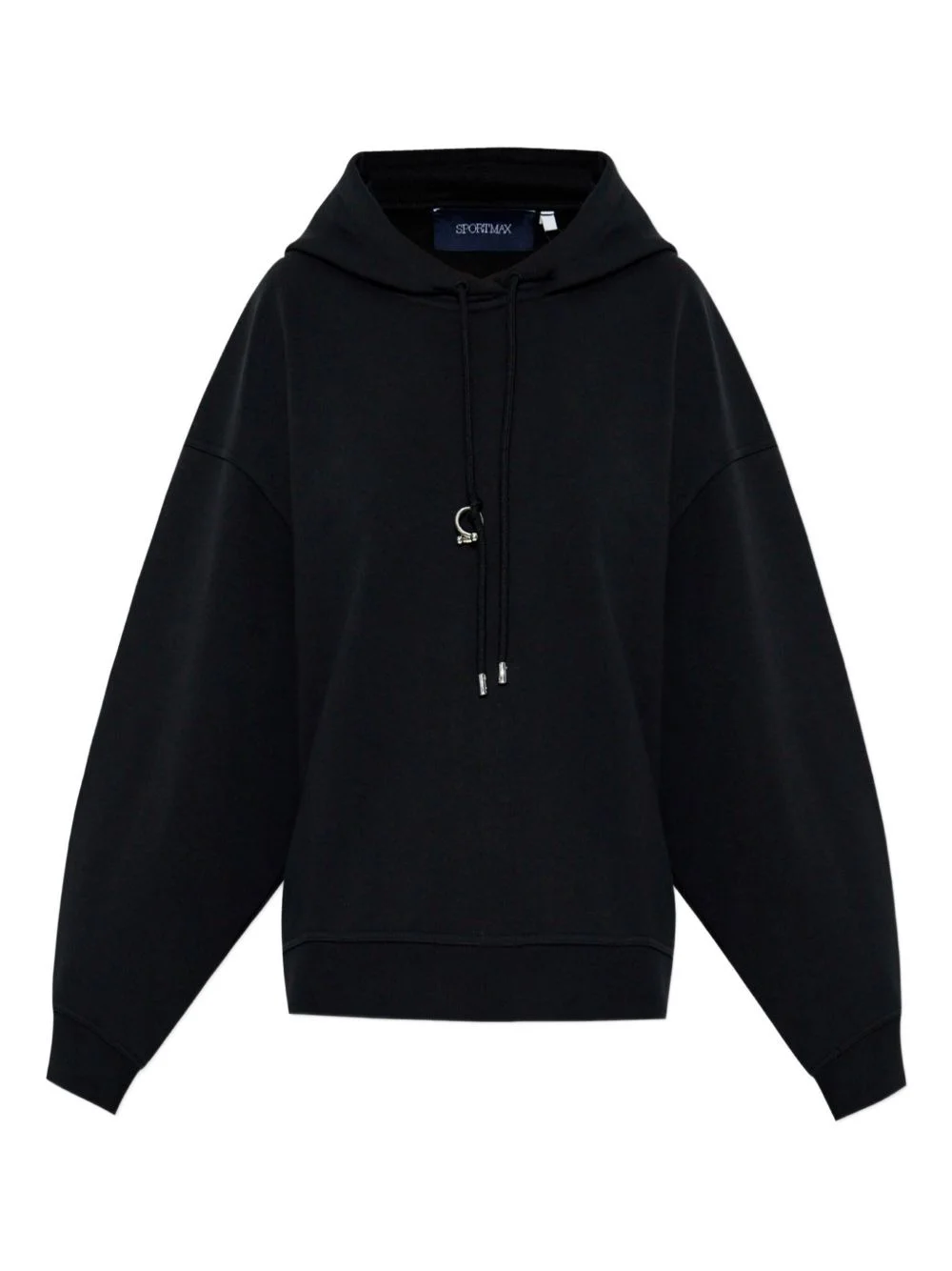ring-detail drawstring hoodie Highlights - Black - Drawstring hood - Metal ring detail - Dropped shoulders - Long sleeves - Relaxed hem Made in Italy Composition Cotton 87%, Elastane 13%