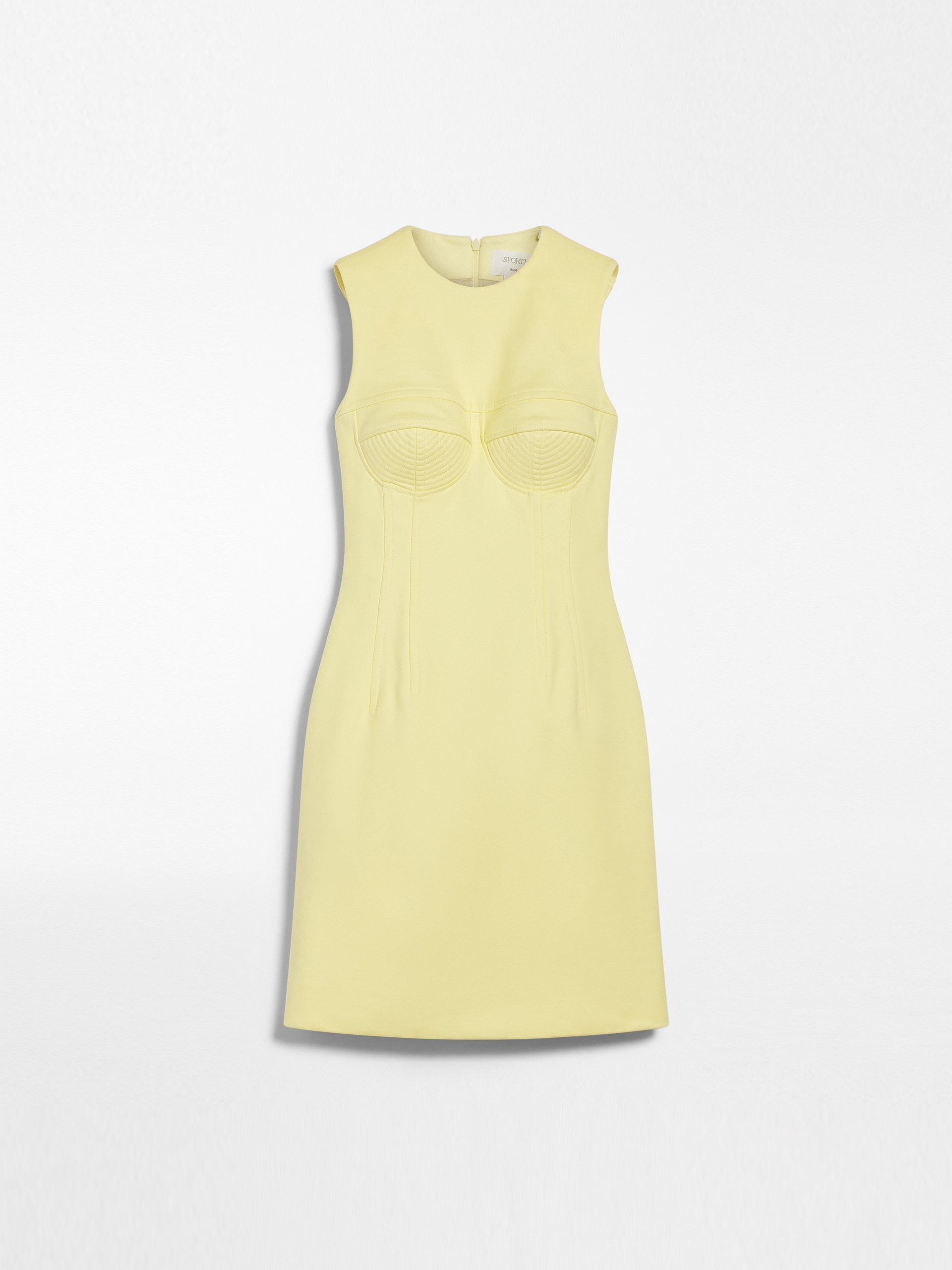 DETAILS Sheath dress made of cotton double fabric with stretchy twill weave. Sleeveless and crew neck, it features seams and stitching that create a corset effect. The silhouette is feminine, with dart details at the waist that highlight the hips. Short and close-fitting. This garment features a structured construction that helps maintain its shape. COMPOSITION AND CARE Fabric 98% cotton, 2% elastane; - except joining thread; lining 95% acetate, 5% elastane. Do not wash; do not bleach; do not tumble dry; cool iron; professionally dry clean perchloroethylene - mild process; do not wet clean.; don’t iron the labels. Distributed by Max Mara S.r.l., registered office in Reggio Emilia (Italy), Via Giulia Maramotti 4, 42124 (IT)