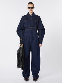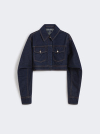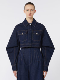 DETAILS Boxy denim jacket with shaped cuts on the sleeves that create a play of stitching. Concealed button placket for a cleaner line. Soft, dark clean indigo denim jacket, garment-treated for a dark, clean effect Boxy fit, short at the waist Shirt collar with covered button placket and custom tack buttons Pockets with shaped flap positioned on the chest Shapes and cuts emphasized by tobacco thread stitching Regular fit COMPOSITION AND CARE 100% cotton. Machine wash cold delicate cycle; do not bleach; do not tumble dry; line drying in the shade; cool iron; professionally dry clean perchloroethylene - mild process.; wash the garment while it is fastened.; do not iron the buttons.; remove the cufflinks before washing.; take care when wearing light-coloured clothes or accessories because, with the heat of the body, the indigo fabric , may fade and stain. be careful while sitting on light coloured surfaces, especially if wet. wash garments separately and always turned inside out. hang the garment turned inside out by avoiding to expose it to direct sunlight. avoid removing isolated stains. Distributed by Max Mara S.r.l., registered office in Reggio Emilia (Italy), Via Giulia Maramotti 4, 42124 (IT)