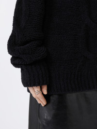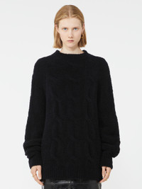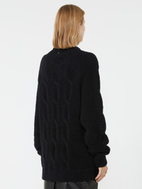 DETAILS Soft, oversized sweater featuring cable knit detailing on the bust and along the centre of the sleeves. Raglan cut with drop stitching on the sleeve. Soft and fine wool-blend yarn jumper Oversize fit Raised collar Cable knit on the bust and centre of the sleeve Raglan cut with drop stitching Ribbed-knit neckline and edges Wide fit COMPOSITION AND CARE 80% wool, 20% polyamide. Hand wash cold (40°c max); do not bleach; do not tumble dry; flat drying in the shade; cool iron; professionally dry clean perchloroethylene - mild process; do not wet clean.; iron with a cloth between.; using neutral detergent. Distributed by Max Mara S.r.l., registered office in Reggio Emilia (Italy), Via Giulia Maramotti 4, 42124 (IT)