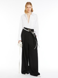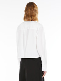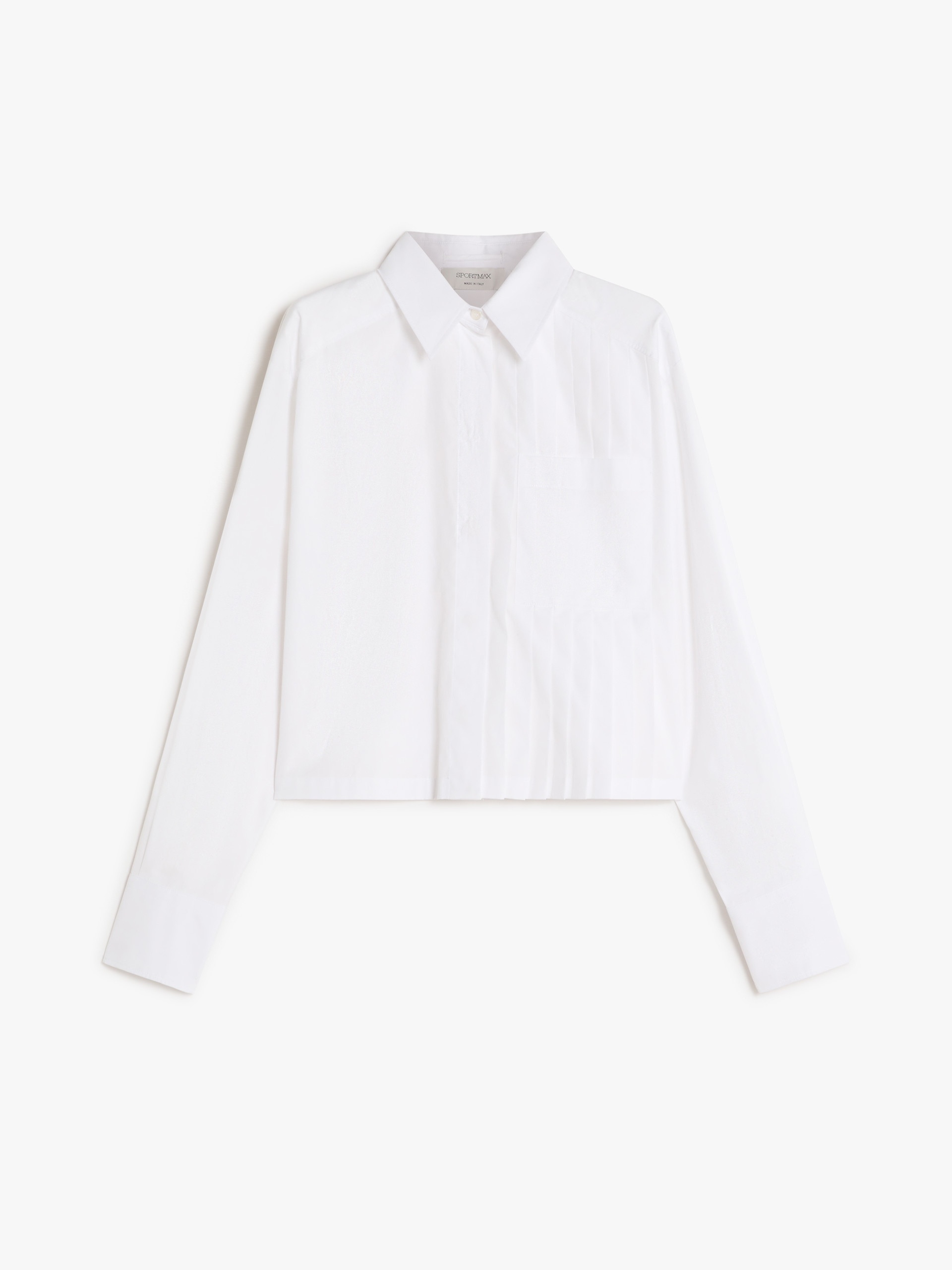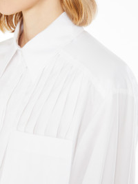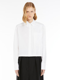 DETAILS Boxy-fit shirt made of pure cotton poplin. The front features stitched pleats on the left side, with an overlapping breast pocket. Back with yoke and reverse pleat. COMPOSITION AND CARE 100% cotton. Machine wash cold delicate cycle; do not bleach; do not tumble dry; line drying in the shade; cool iron; professionally dry clean perchloroethylene - mild process.; after washing fix the pleats by ironing them. Distributed by Max Mara S.r.l., registered office in Reggio Emilia (Italy), Via Giulia Maramotti 4, 42124 (IT)