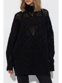 diamond-knit maxi jumper Highlights - Black - Wool-cashmere blend - Knitted construction - High neck - Long sleeves - Straight hem Made in Italy Composition Wool 70%, Cashmere 30%