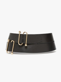 DETAILS Oversized leather belt with stitched edges, 12 cm wide, with a low waist. “S” shaped double metal buckle that recalls the SPORTMAX logo. Both buckles are adjustable. COMPOSITION AND CARE Material belt cattle; back cattle. Distributed by Max Mara S.r.l., registered office in Reggio Emilia (Italy), Via Giulia Maramotti 4, 42124 (IT)
