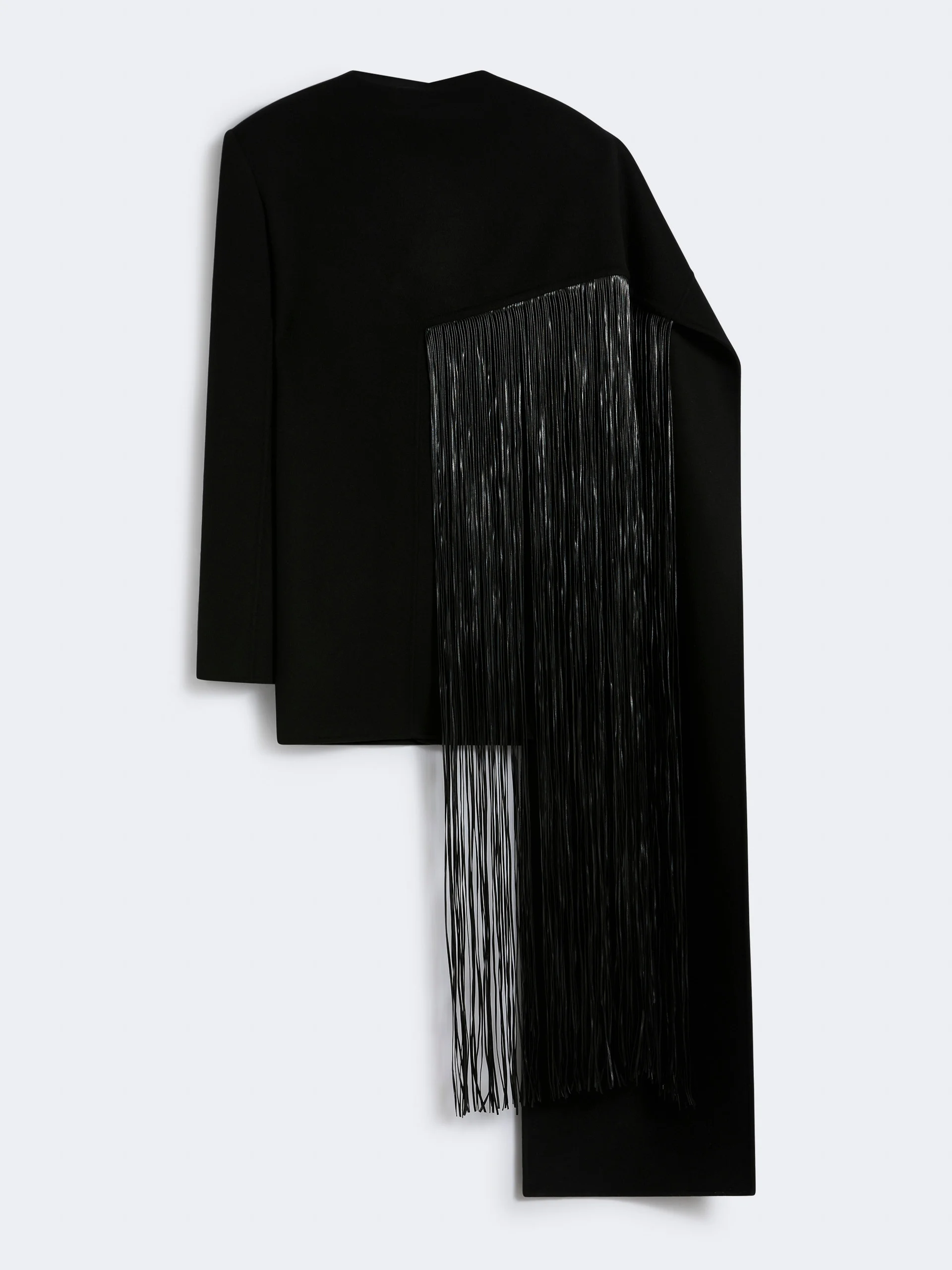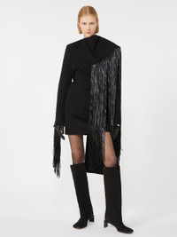 DETAILS Wraparound mini dress in soft double-faced pure wool broadcloth. An innovative design: the front-inset scarf detail is decorated with long coated fabric fringes. Lined mini dress in double-faced pure wool fabric Slim fit Funnel-neck Scarf applique with coated fabric fringes Slim fit COMPOSITION AND CARE Fabric 100% virgin wool; - except joining thread; decorations in 100% polyester; lining 55% polyester, 45% viscose. Do not wash; do not bleach; do not tumble dry; cool iron; professionally dry clean perchloroethylene - mild process; do not wet clean.; remove the decorations before washing. Distributed by Max Mara S.r.l., registered office in Reggio Emilia (Italy), Via Giulia Maramotti 4, 42124 (IT)