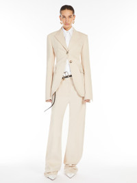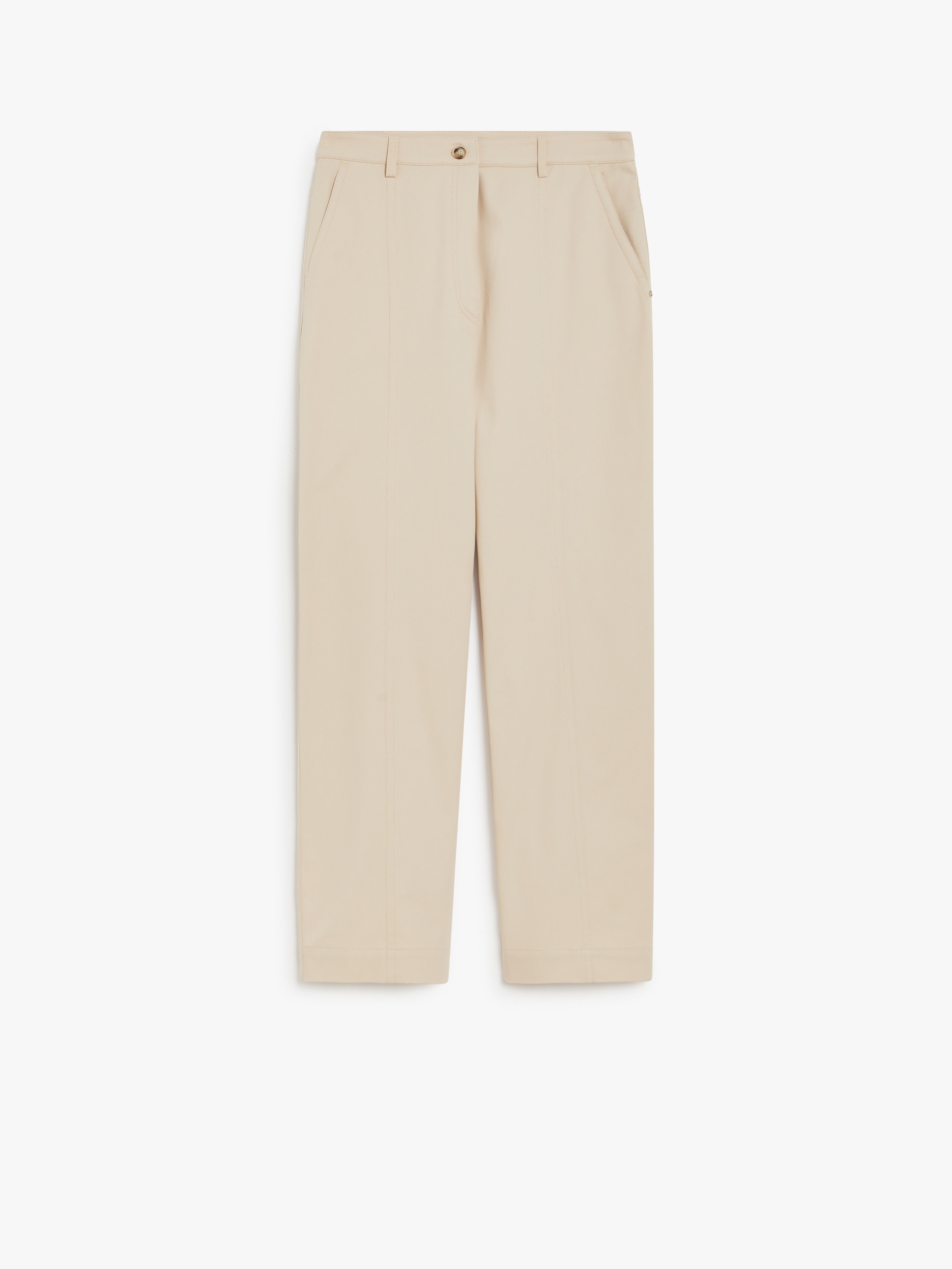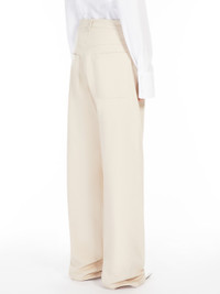 DETAILS Trousers in pure cotton twill, with a wide, floor-length leg. The construction features vertical seams with slightly contrasting double stitching, slant side pockets and back patch pockets. All the stitching is in contrasting thread. Regular fit. COMPOSITION AND CARE 97% cotton, 3% elastane. Do not wash; do not bleach; do not tumble dry; cool iron; professionally dry clean perchloroethylene - mild process; do not wet clean.; wash the garment while it is fastened.; turn the articles inside out before washing. Distributed by Max Mara S.r.l., registered office in Reggio Emilia (Italy), Via Giulia Maramotti 4, 42124 (IT)
