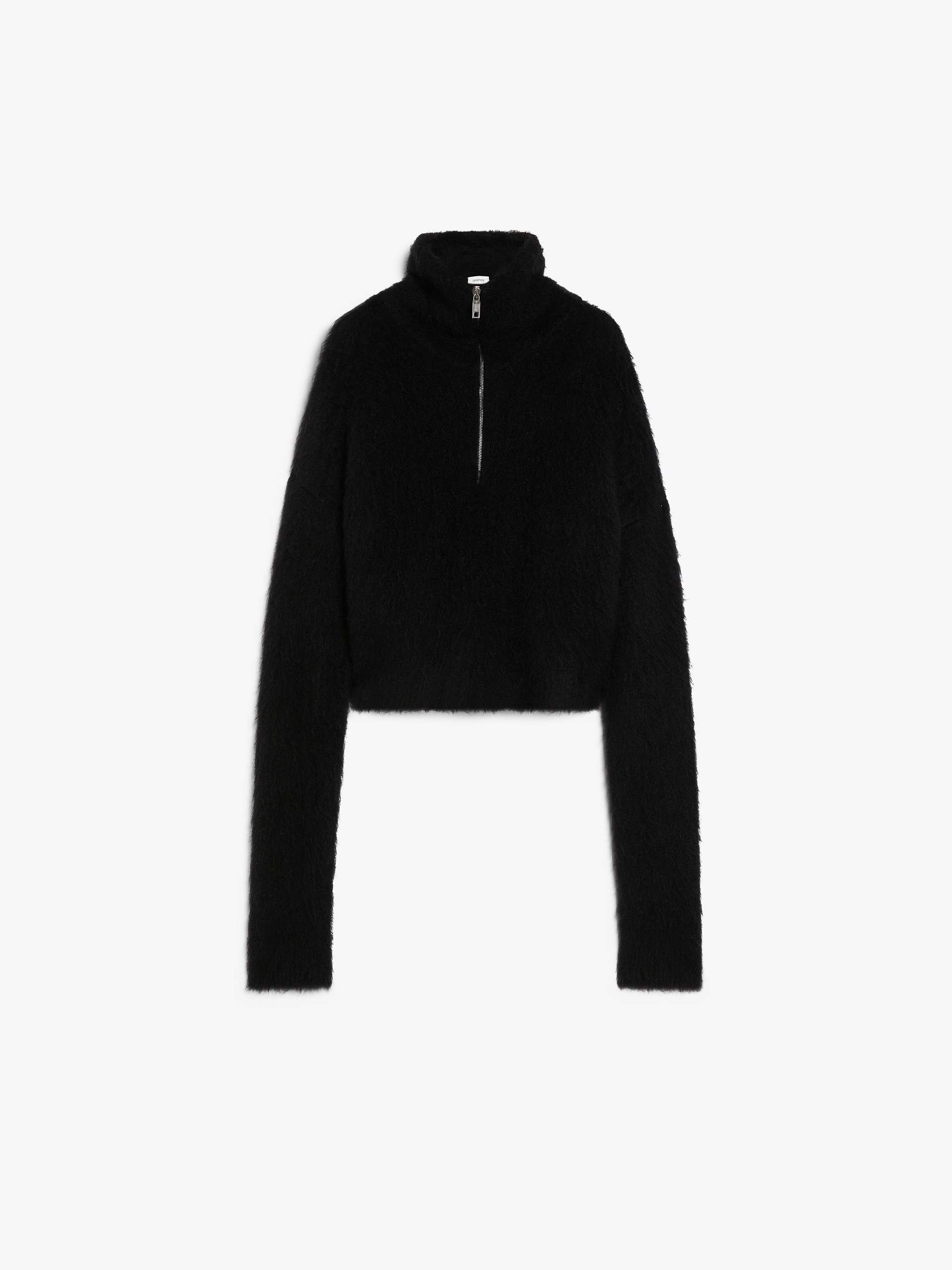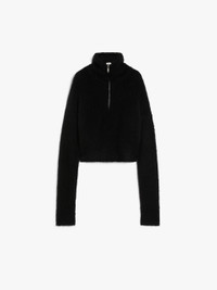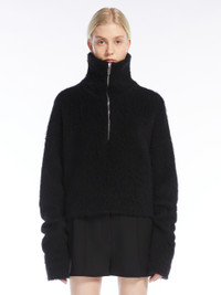 DETAILS Boxy-fit sweater in soft and fluffy-hand alpaca-blend yarn. The high-neck model boasts a half-zip on the front, exaggerated dropped shoulders and loose-fitting sleeves that taper at the hem. Rib-knit neck, cuffs and hem. Below-the-waist length. COMPOSITION AND CARE Knitted fabric 74% alpaca, 24% polyamide, 2% elastane; hems 69% alpaca, 28% polyamide, 3% elastane. Do not wash; do not bleach; do not tumble dry; cool iron; professionally dry clean perchloroethylene - mild process; do not wet clean.; iron with a cloth between. Distributed by Max Mara S.r.l., registered office in Reggio Emilia (Italy), Via Giulia Maramotti 4, 42124 (IT)
