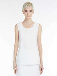 DETAILS Sleeveless top in lightweight crepe jersey fabric featuring a lightly padded bodice, in addition to 3D details on the shoulders and hem. The slim-fit model boasts visible stitching-decorated central front and rear darts, in addition to deep darts. Side opening with concealed zip. COMPOSITION AND CARE Jersey fabric 100% polyester; lining 100% polyester; fibre padding 100% polyester. Hand wash cold; do not bleach; do not tumble dry; flat drying in the shade; cool iron; professionally dry clean perchloroethylene - mild process; do not wet clean.; iron with a cloth between.; using neutral detergent.; don’t rub.; turn the articles inside out before washing.; don’t iron the labels.; to be ironed on reverse. Distributed by Max Mara S.r.l., registered office in Reggio Emilia (Italy), Via Giulia Maramotti 4, 42124 (IT)