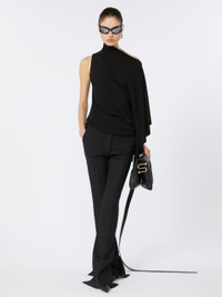 DETAILS Milano rib-knit jersey top. The original construction is sleeveless on the right side and features an asymmetric neck that forms a kimono sleeve with draping on the left side. - Asymmetric top in Milano rib-knit stretch viscose jersey - Slim fit - Asymmetric neck with sleeveless right side - Kimono sleeve with drape on the left COMPOSITION AND CARE 85% viscose, 15% elastane. Do not wash; do not bleach; do not tumble dry; cool iron; professionally dry clean perchloroethylene - mild process; do not wet clean.; iron with a cloth between. Distributed by Max Mara S.r.l., registered office in Reggio Emilia (Italy), Via Giulia Maramotti 4, 42124 (IT)