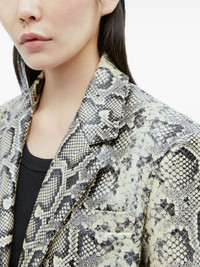 snakeskin-pattern single-breasted blazer Highlights - Beige - Snakeskin print - Single-breasted closure - Notched lapel - Long sleeves - Flap pockets Imported Composition Calf Leather 100% Washing instructions Read Manufacturer Guidelines