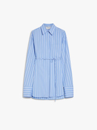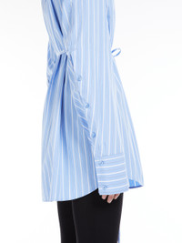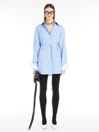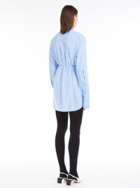 DETAILS Long oversized tunic in striped pure cotton poplin, with dropped shoulders and stitching at the elbow that attaches a second internal cuff. The construction features a back yoke with a reverse pleat and high three-button cuffs. The textile belt is perfect for cinching it in as desired and defining the silhouette. Rounded hem. Wide fit. COMPOSITION AND CARE 100% cotton. Machine wash cold delicate cycle; do not bleach; do not tumble dry; line drying in the shade; cool iron; professionally dry clean perchloroethylene - mild process.; wash the belt in a net sack. Distributed by Max Mara S.r.l., registered office in Reggio Emilia (Italy), Via Giulia Maramotti 4, 42124 (IT)