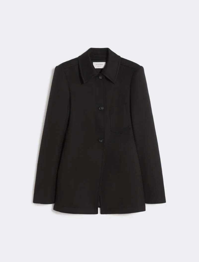 Hourglass-shaped shirt jacket, fitted at the waist, accentuated by vertical seams on the bodice and a fixed martingale on the back. The silhouette is accentuated by the cut-away line to the hem. - Shirt jacket in washed cotton and viscose double-face gabardine with internal lining - Shirt collar and visible button fastening - cut-away to the hem and stitched vertical seams - Fixed martingale at the back - Fitted Composition and Care Fabric 53% cotton, 47% viscose; lining 70% acetate, 30% polyester; sleeves lining 97% viscose, 3% acetate. Do not wash; do not bleach; do not tumble dry; cool iron; professionally dry clean perchloroethylene - mild process; do not wet clean.; put this item into a string bag before washing it.; wash the garment while it is fastened. Distributed by Max Mara S.r.l., registered office in Reggio Emilia (Italy), Via Giulia Maramotti 4, 42124