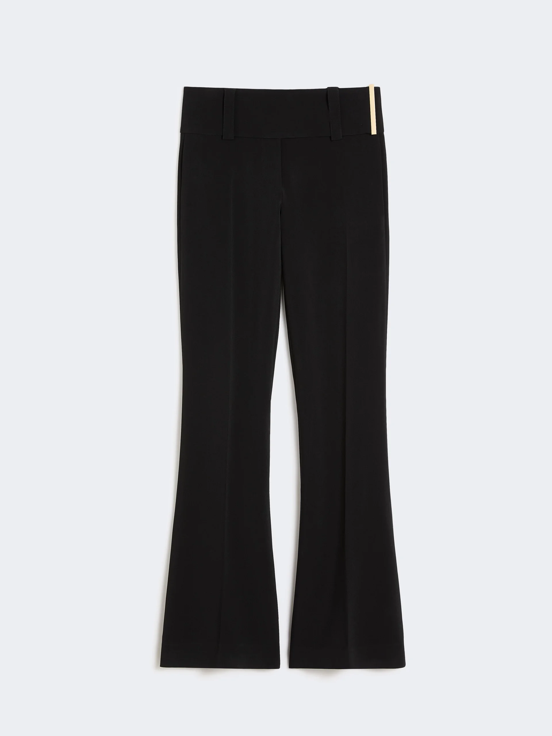 DETAILS Flared low-rise trousers with a slim fit at the thighs. The low-rise model is embellished with a side-fastening statement belt, complete with metal detail. - Stretch viscose cady trousers - Slim cut at the thighs and flared leg hems - Low-rise waist with a statement belt and metal detail - Pressed pleat detail on the front and back - In-seam side pockets and welt rear pockets - Regular fit COMPOSITION AND CARE 97% viscose, 3% elastane. Do not wash; do not bleach; do not tumble dry; cool iron; professionally dry clean perchloroethylene - mild process; do not wet clean.; put this item into a string bag before washing it.; wash the garment while it is fastened.; protect the metal parts before washing.; turn the articles inside out before washing. Distributed by Max Mara S.r.l., registered office in Reggio Emilia (Italy), Via Giulia Maramotti 4, 42124 (IT) Collection: Sportmax Product code: 2131086306004 - SPSVELA