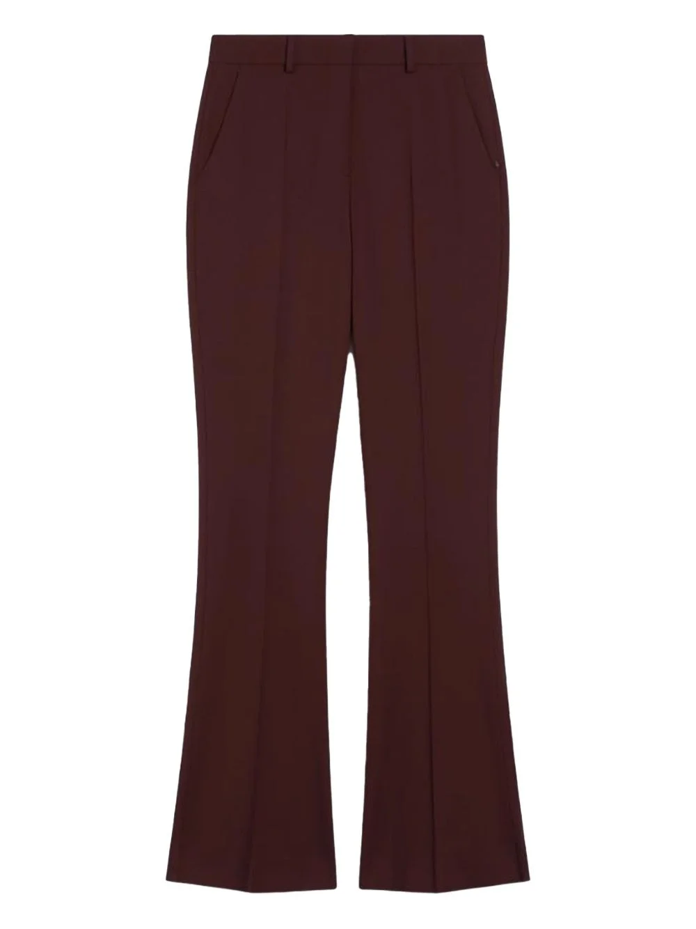 flared tailored trousers Highlights - Burgundy - Pressed crease - Concealed fastening Imported Composition Virgin Wool 95%, Elastane 5% Washing instructions Read Manufacturer Guidelines