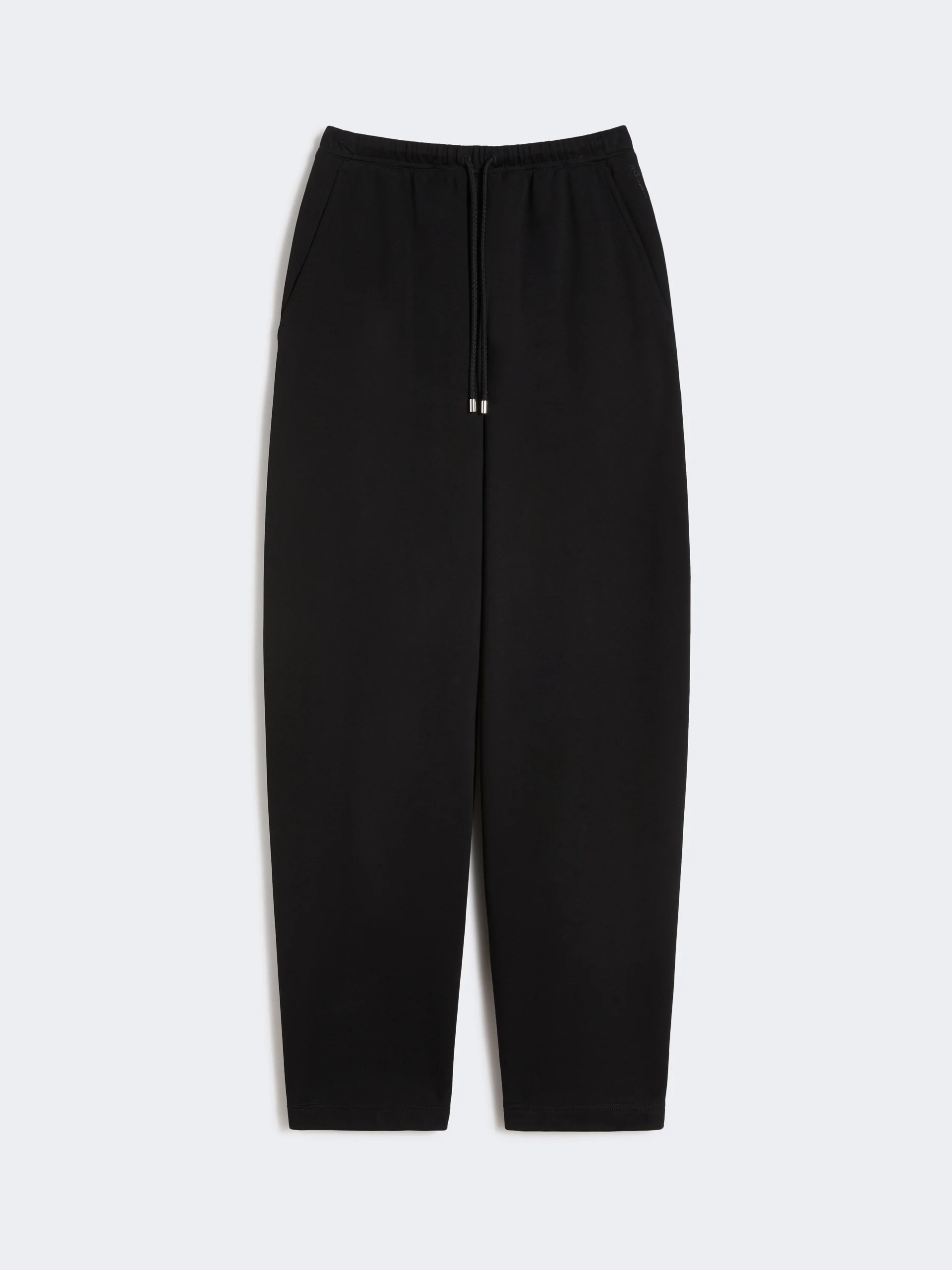 DETAILS Sweatpants with a soft, relaxed volume, perfect for moments of leisure or casual outings. Featuring a drawstring waist and a tone-on-tone rubberized logo. - Stretch cotton-blend jersey fleece pants - Drawstring and elastic waistband - Slanted side pockets and a single welt back pocket - Tone-on-tone rubberized printed logo - Regular fit COMPOSITION AND CARE 87% cotton, 13% elastomultiester. Machine wash cold delicate cycle; do not bleach; do not tumble dry; flat drying in the shade; cool iron; do not dry clean; professional wet cleaning - very mild process.; iron with a cloth between.; using neutral detergent.; protect accessories before washing.; turn the articles inside out before washing.; to be ironed on reverse. Distributed by Max Mara S.r.l., registered office in Reggio Emilia (Italy), Via Giulia Maramotti 4, 42124 (IT) Collection: Sportmax Product code: 2781016506004 - SPDNESPOLA