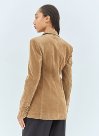 Flocked denim blazer garment-trated for a marbled velvet effect. - Peak lapels - Double-breasted button fastening - Long sleeves - Four non-functioning buttons at cuffs - Side flap pockets - Fully lined - 98% Cotton, 2% Elastane. Hand wask - Color: Brown - Code: 2422046072600 001