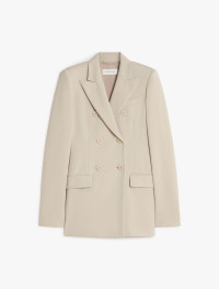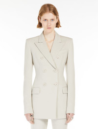 Double-breasted blazer in technical scuba jersey, with a fitted shape that accentuates the silhouette. The lightly padded shoulders and peak lapels evoke formal menswear styles, as do the breast pocket and side flap pockets. Very fitted long sleeves. Melton undercollar. Regular fit. Composition and Care Outer fabric 84% polyamide, 16% elastane; inner fabric 100% polyester; lining 95% acetate, 5% elastane; sleeves lining 97% viscose, 3% acetate. Do not wash; do not bleach; do not tumble dry; cool iron; professionally dry clean perchloroethylene - mild process; do not wet clean. Distributed by Max Mara S.r.l., registered office in Reggio Emilia (Italy), Via Giulia Maramotti 4, 42124