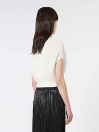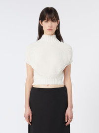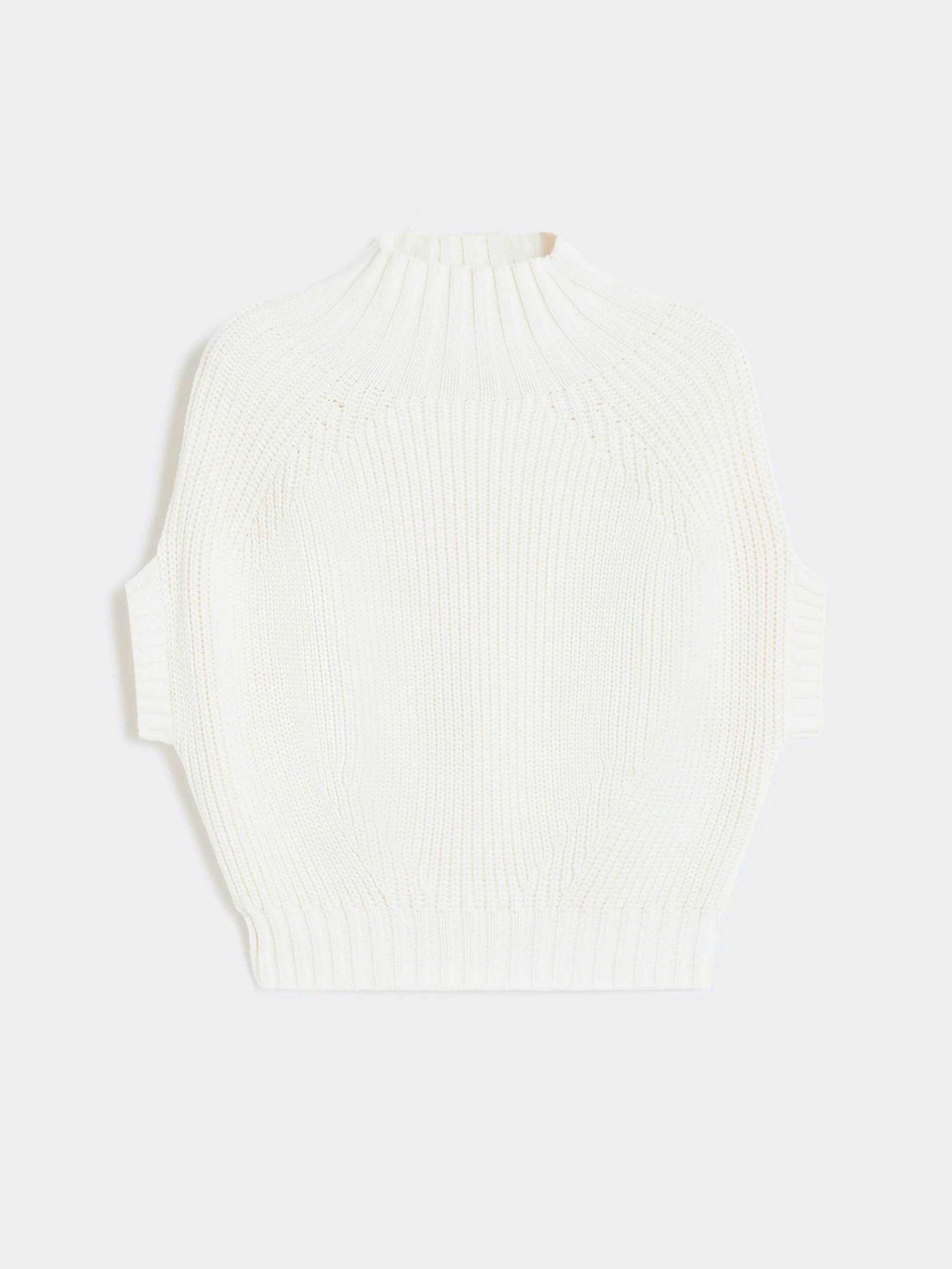 DETAILS Balloon-shaped jumper, emphasized by the play of evident drops on the shoulder and hem of the garment. Made from cotton with a fisherman’s rib knit, it features a raised collar and ribbed edges. Pure cotton yarn jumper Fitted Raised collar Edges and hem of garment in ribbed knit. Evident drop details Fitted waist. COMPOSITION AND CARE 62% cotton, 38% polyamide. Hand wash cold (40°c max); do not bleach; do not tumble dry; flat drying in the shade; cool iron; professionally dry clean perchloroethylene - mild process; do not wet clean.; iron with a cloth between.; using neutral detergent. Distributed by Max Mara S.r.l., registered office in Reggio Emilia (Italy), Via Giulia Maramotti 4, 42124 (IT)