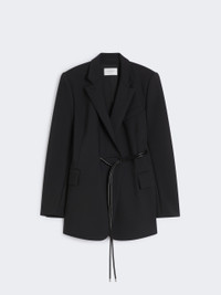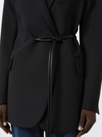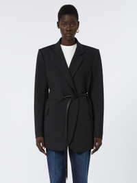 DETAILS Tailored blazer with double-breasted construction, with a highlighted waist. The special construction with internal belt passage on the right side creates a play of asymmetries. Blazer in double stretch viscose canvas with belt and internal lining Regular fit Lapel neckline Tubular belt Side pockets with double welt and flap Wide fit COMPOSITION AND CARE Jacket fabric 97% viscose, 3% elastane; lining 70% acetate, 30% polyester; sleeves lining 97% viscose, 3% acetate; with belt in polyester with polyurethane coating. Jacket: do not wash; do not bleach; do not tumble dry; cool iron; professionally dry clean perchloroethylene - mild process; do not wet clean.; Put this item into a string bag before washing it. Belt: do not wash; do not bleach; do not tumble dry; do not iron; do not dry clean; do not wet clean. Distributed by Max Mara S.r.l., registered office in Reggio Emilia (Italy), Via Giulia Maramotti 4, 42124 (IT)