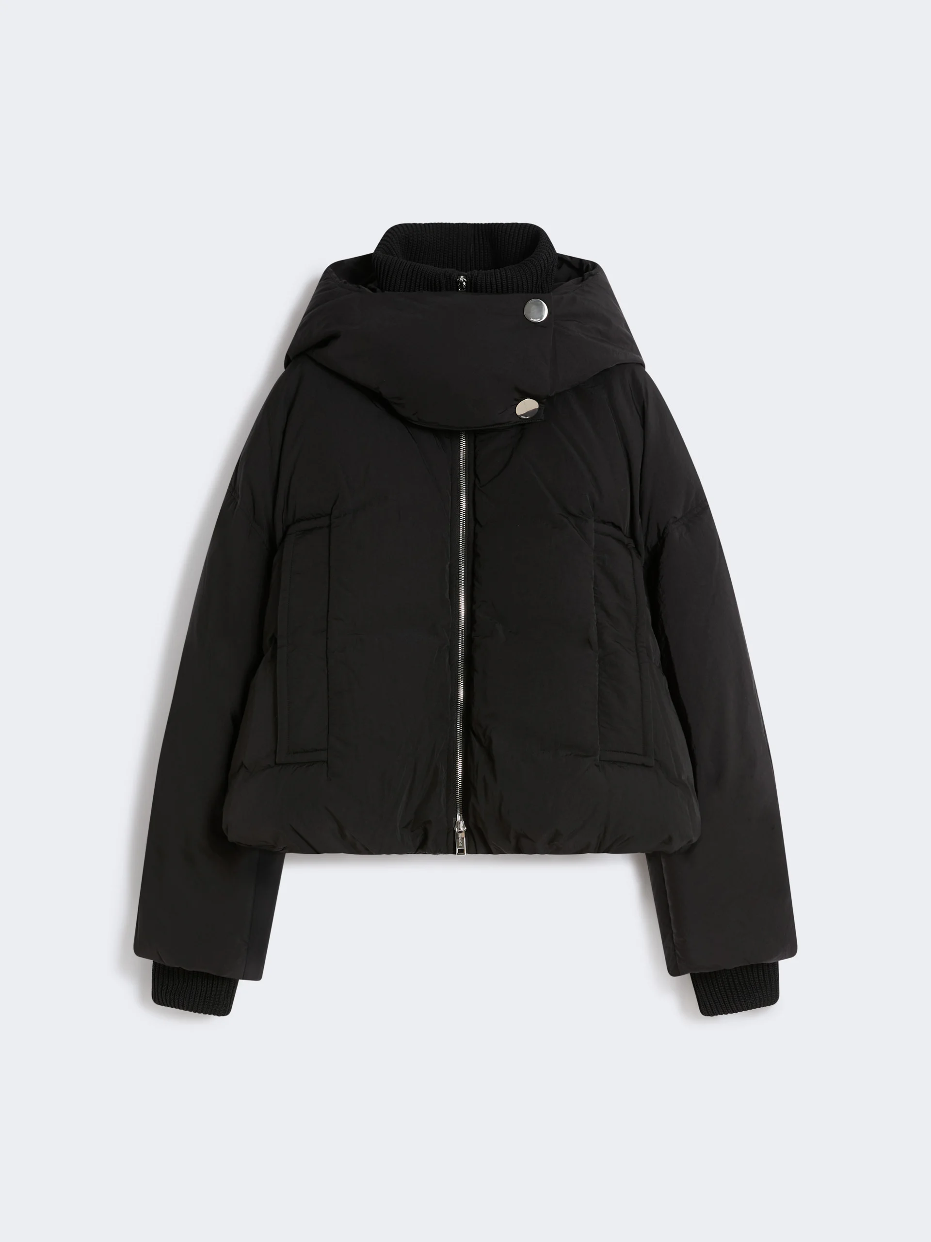 DETAILS Soft-volume, waist-length down jacket. Made of water-repellent technical fabric, it features goose down padding and a removable hood that closes with snap buttons. Water-repellent technical fabric down jacket with crinkle effect Loose fit Ribbed knit stand-up collar and detachable hood Front zip opening Flapped side pockets Ribbed knit collar and cuffs Wide fit COMPOSITION AND CARE Fabric 100% polyamide; lining 100% polyamide; with quilting in 100% polyester; with knitted details 100% polyester; with quilting virgin down. Machine wash cold delicate cycle; do not bleach; do not tumble dry; line drying in the shade; cool iron; professionally dry clean perchloroethylene - mild process.; put this item into a string bag before washing it.; wash the garment while it is fastened.; turn the articles inside out before washing.; contains non-textile parts of animal origin. Distributed by Max Mara S.r.l., registered office in Reggio Emilia (Italy), Via Giulia Maramotti 4, 42124 (IT)