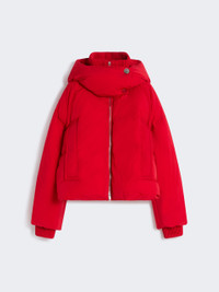 DETAILS Soft-volume, waist-length down jacket. Made of water-repellent technical fabric, it features goose down padding and a removable hood that closes with snap buttons. Water-repellent technical fabric down jacket with crinkle effect Loose fit Ribbed knit stand-up collar and detachable hood Front zip opening Flapped side pockets Ribbed knit collar and cuffs Wide fit COMPOSITION AND CARE Fabric 100% polyamide; lining 100% polyamide; with quilting in 100% polyester; with knitted details 100% polyester; with quilting virgin down. Machine wash cold delicate cycle; do not bleach; do not tumble dry; line drying in the shade; cool iron; professionally dry clean perchloroethylene - mild process.; put this item into a string bag before washing it.; wash the garment while it is fastened.; turn the articles inside out before washing.; contains non-textile parts of animal origin. Distributed by Max Mara S.r.l., registered office in Reggio Emilia (Italy), Via Giulia Maramotti 4, 42124 (IT)