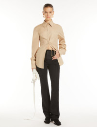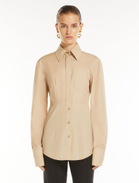 Fitted shirt in pure cotton poplin, with side darts and a seam at the waist that further defines the silhouette. The garment features a menswear breast pocket, covered button placket at the top only, and shiny thread stitching. Regular fit. Composition and Care 100% cotton. Machine wash cold delicate cycle; do not bleach; do not tumble dry; line drying in the shade; cool iron; professionally dry clean perchloroethylene - mild process. Distributed by Max Mara S.r.l., registered office in Reggio Emilia (Italy), Via Giulia Maramotti 4, 42124
