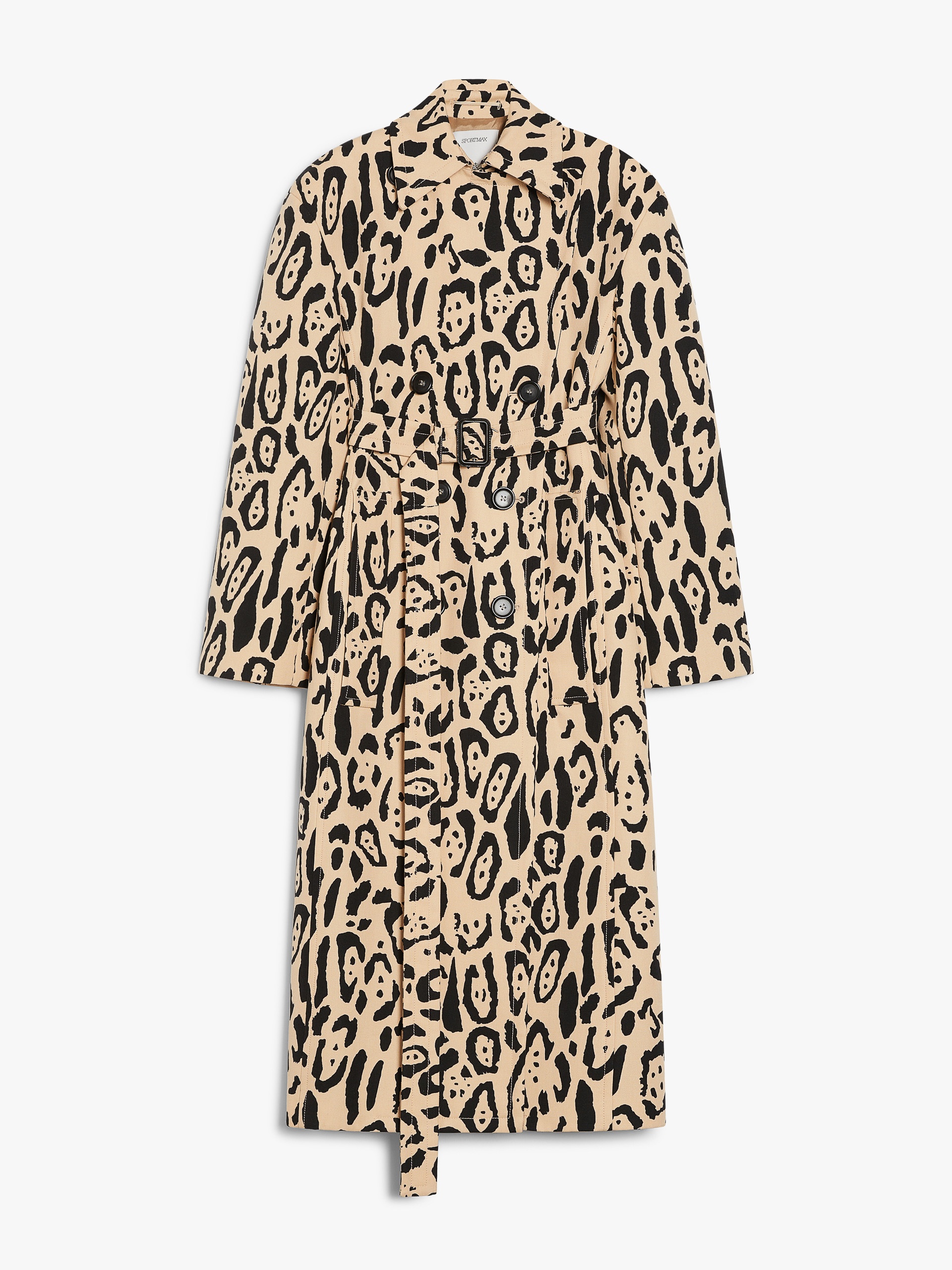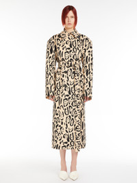 DETAILS Trench coat in water-resistant pure cotton with an animal print. The construction features wide lapels on the neckline, welt pockets and a belt with a leather-covered buckle. Visible stitching defines all the construction seams. Lined garment with centre-back slit. Wide fit. COMPOSITION AND CARE Fabric 100% cotton; lining 70% acetate, 30% polyester. Do not wash; do not bleach; do not tumble dry; cool iron; professionally dry clean perchloroethylene - mild process; do not wet clean.; put this item into a string bag before washing it.; remove the buckle before washing.; contains non-textile parts of animal origin. Distributed by Max Mara S.r.l., registered office in Reggio Emilia (Italy), Via Giulia Maramotti 4, 42124 (IT)