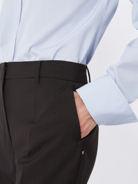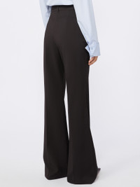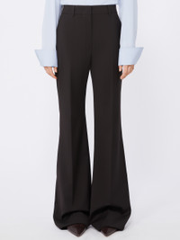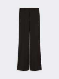 DETAILS Trousers in pure natural stretch wool canvas, with flared line and trouser crease that further lengthens the silhouette. The hidden hook construction and slant side pockets are inspired by men's models. Flared trousers in natural stretch pure wool canvas. Flared line with regular waist Menswear-style hook fastening Slant side pockets and back welt pockets. Trouser crease front and back. Regular fit COMPOSITION AND CARE 100% virgin wool. Do not wash; do not bleach; do not tumble dry; cool iron; professionally dry clean perchloroethylene - mild process; do not wet clean. Distributed by Max Mara S.r.l., registered office in Reggio Emilia (Italy), Via Giulia Maramotti 4, 42124 (IT)