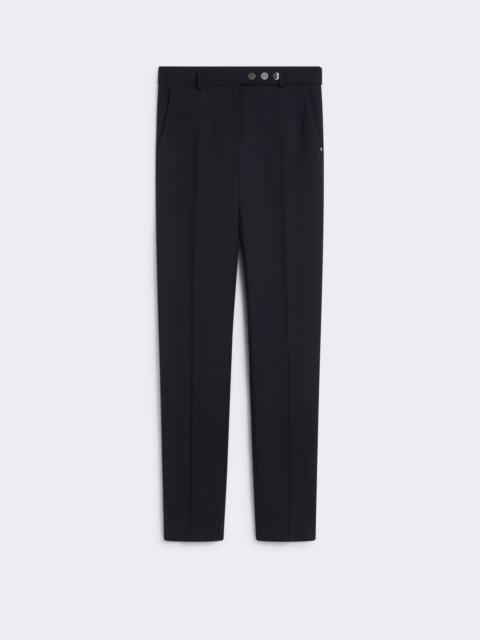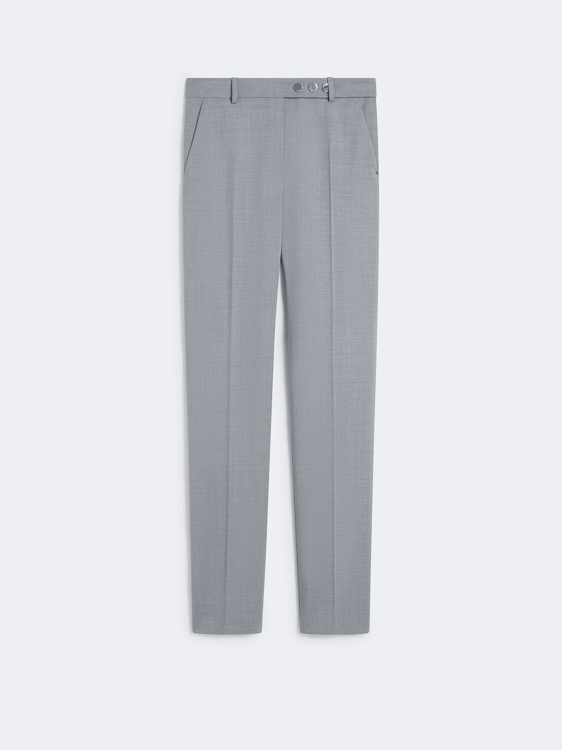 DETAILS Cigarette trousers in soft stretch wool, with zipped slit at the ankle that accentuates the leg’s slender line. The long flap at the waist falls freely at the front. Natural stretch pure wool trousers Cigarette fit with slightly low waist Closure with custom snap buttons and long flap with belt effect Customised waistband interior Trouser crease on front and back with zipped ankle slit at the back Slant side pockets and back welt pockets Regular fit COMPOSITION AND CARE 100% virgin wool. Do not wash; do not bleach; do not tumble dry; cool iron; professionally dry clean perchloroethylene - mild process; do not wet clean. Distributed by Max Mara S.r.l., registered office in Reggio Emilia (Italy), Via Giulia Maramotti 4, 42124 (IT)
