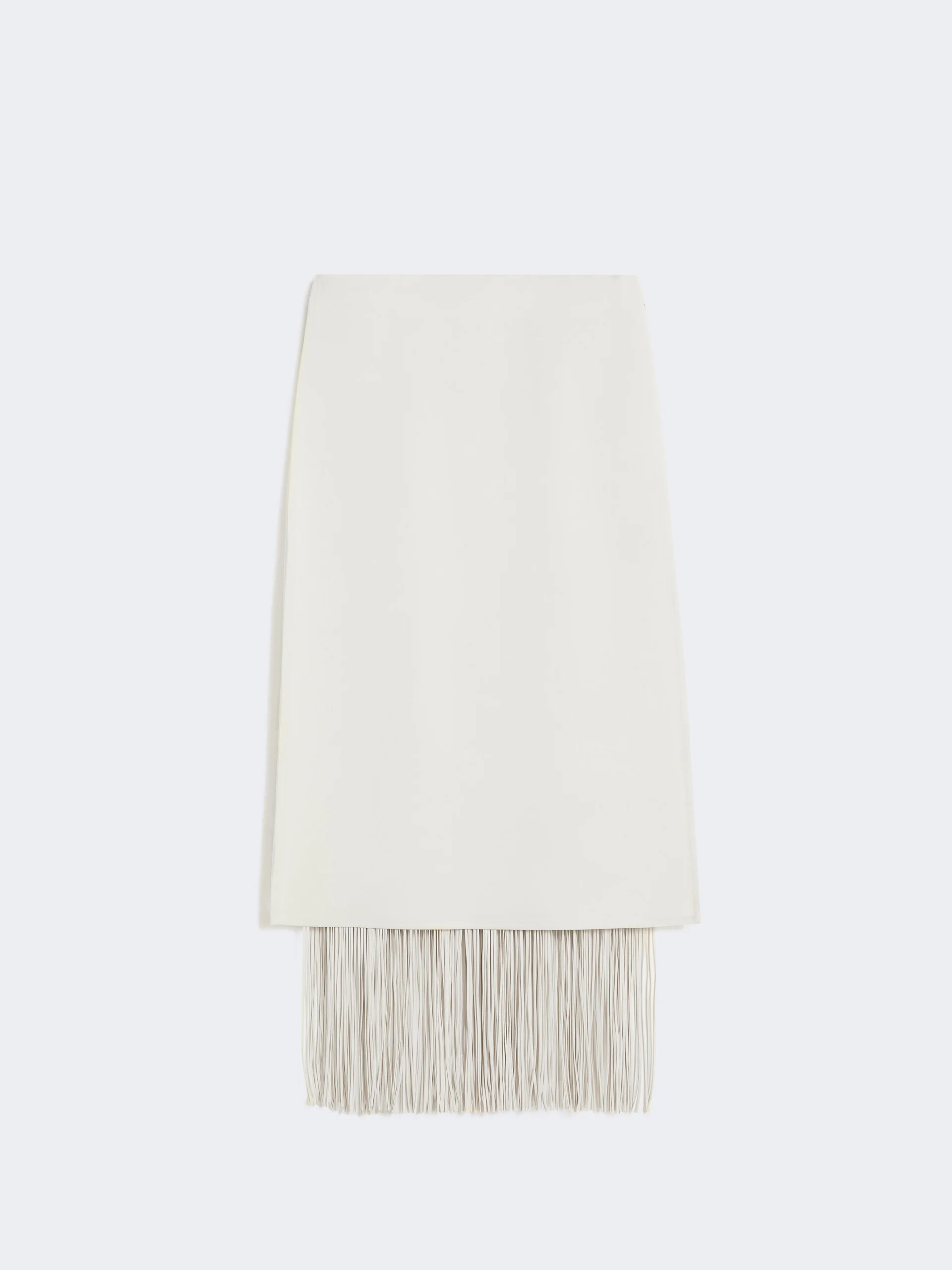 DETAILS The clean line of this cady skirt is interrupted by the lightness of the detachable fringes, in coated jersey. The construction features an overlapping panel on the front. The different lengths create an asymmetrical movement, which sways with every step. Flared skirt in washed double cotton cady and viscose Gently flared fit with low waist. Side closure with concealed zip. Removable long fringes, in coated jersey Regular fit COMPOSITION AND CARE Fabric 53% cotton, 47% viscose; decorations in 100% polyester; coating polyurethane. Do not wash; do not bleach; do not tumble dry; cool iron; professionally dry clean perchloroethylene - mild process; do not wet clean.; remove the decorations before washing. Distributed by Max Mara S.r.l., registered office in Reggio Emilia (Italy), Via Giulia Maramotti 4, 42124 (IT)