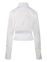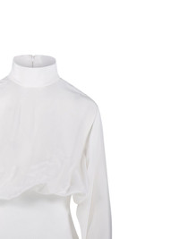 high-neck ribbed-waist top Highlights - White - High neck - Long sleeves - Cuffed sleeves - Elasticated waist - Gathered bodice Made in Italy Composition Silk 100% Washing instructions Read Manufacturer Guidelines