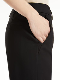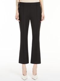 DETAILS Mini flare trousers in double faced stretch cotton blend canvas featuring the Iconic SPORTMAX design. The low rise design features a customised internal waistband, slanted side pockets, welt rear pockets and ribbing detail on the front of the leg. COMPOSITION AND CARE 48% cotton, 46% polyamide, 6% elastane. Hand wash cold; do not bleach; do not tumble dry; line drying in the shade; cool iron; professionally dry clean perchloroethylene - mild process; do not wet clean.; don’t iron the labels. Distributed by Max Mara S.r.l., registered office in Reggio Emilia (Italy), Via Giulia Maramotti 4, 42124 (IT)