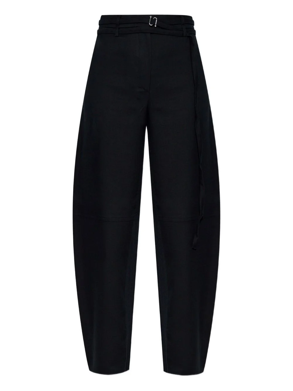 hook-fastening trousers Highlights - Black - Hook-and-eye fastening - Belt loops - Self-tie belt - Panelled design Made in Italy Composition Cotton 53%, Viscose 47% Washing instructions Read Manufacturer Guidelines