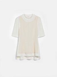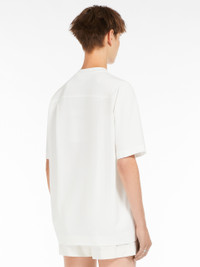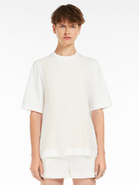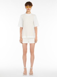 DETAILS Regular-fit short-sleeved T-shirt in pure cotton jersey fabric. The front boasts a contrasting-colour inlay, whilst the back features a volume-enhancing deep yoke. The garment also comprises a reinforced stretch jersey inner band, which creates a corset effect when worn COMPOSITION AND CARE Jersey fabric 100% cotton; lining 94% cotton, 6% elastane. Hand wash cold; do not bleach; do not tumble dry; flat drying in the shade; cool iron; do not dry clean; do not wet clean.; iron with a cloth between.; using neutral detergent.; don’t rub.; don’t iron the labels. Distributed by Max Mara S.r.l., registered office in Reggio Emilia (Italy), Via Giulia Maramotti 4, 42124 (IT)