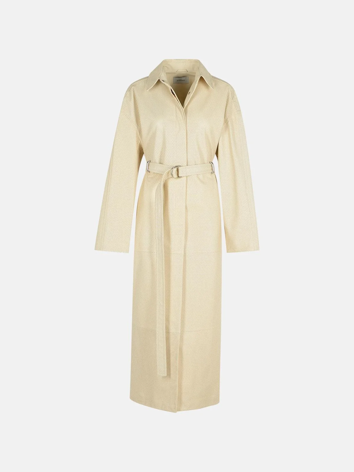 Manufacture code: 2512471013 001 Retail code: 2512471013 001 Pointed collar, texture with serial stitching, button closure, tonal belt, metal inserts Main: 100% calf leather Made in Italy