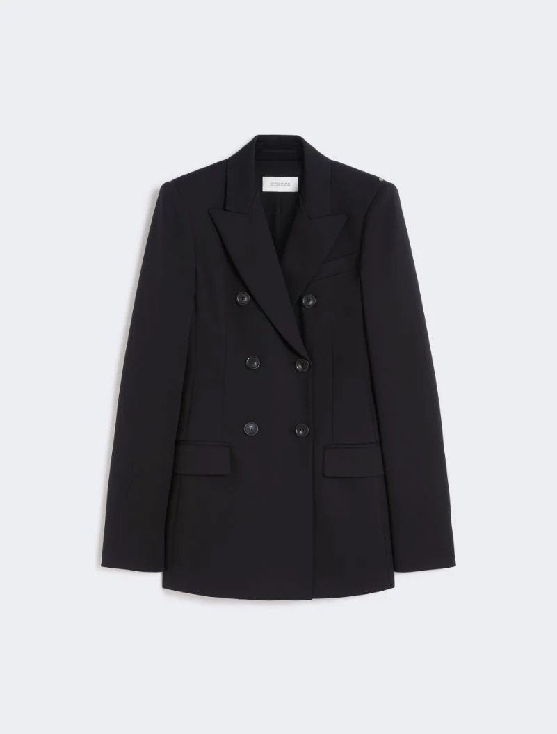 Compact jersey and a tailored cut define this new double-breasted blazer. The lines are clean, with peak lapels and contrasting colour buttons. - Jersey blazer - Collar with peak lapels - Double-breasted closure with visible buttons - Welt pockets with flap - Fitted waist Composition and Care Outer fabric 87% polyamide, 13% elastane; inner fabric 100% polyester; lining 100% polyester; sleeves lining 97% viscose, 3% acetate. Do not wash; do not bleach; do not tumble dry; cool iron; professionally dry clean perchloroethylene - mild process; do not wet clean. Distributed by Max Mara S.r.l., registered office in Reggio Emilia (Italy), Via Giulia Maramotti 4, 42124