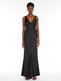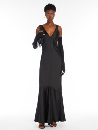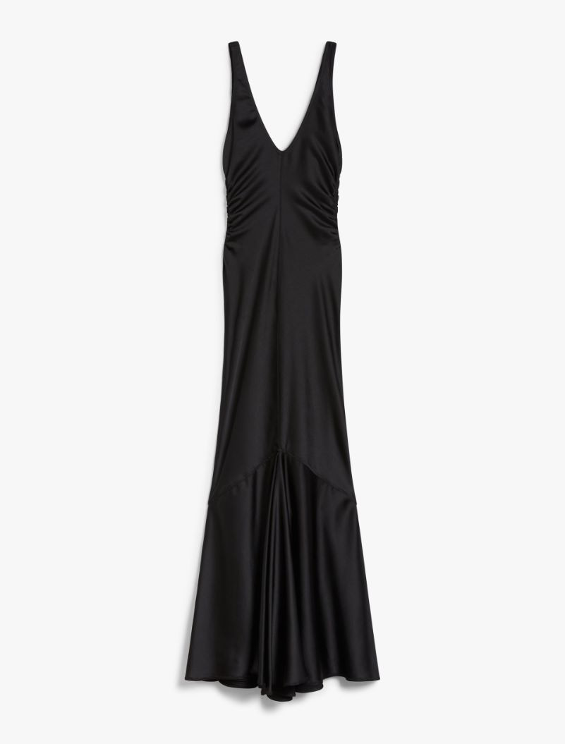 Long satin dress, with a deep V neckline at both the front and back. The sides feature gathering that creates movement at the bodice. The bias-cut hem of the skirt creates a mermaid shape. Regular fit. Composition and Care 100% polyester. Machine wash cold delicate cycle; do not bleach; do not tumble dry; line drying in the shade; cool iron; professionally dry clean perchloroethylene - mild process. Distributed by Max Mara S.r.l., registered office in Reggio Emilia (Italy), Via Giulia Maramotti 4, 42124