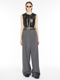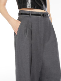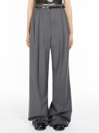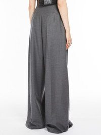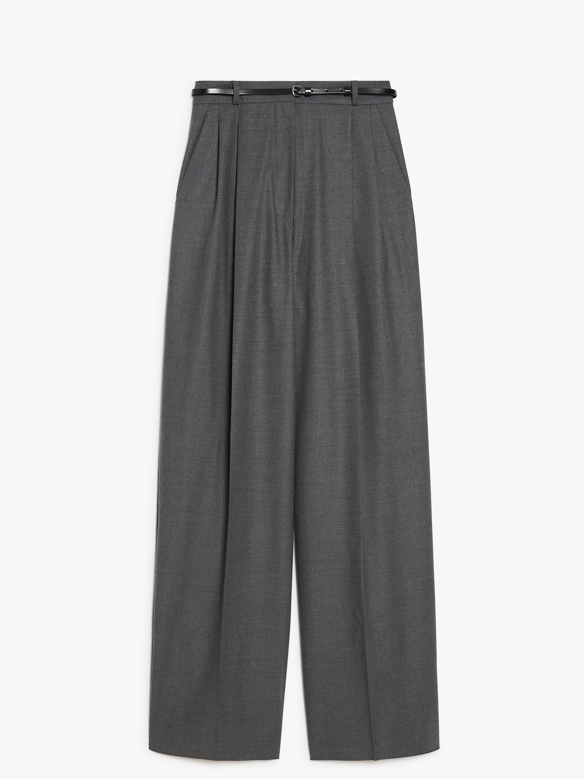 DETAILS Oversized trousers in soft, movement-flexible stretch wool flannel fabric. The mannish-style design boasts a branded internal waistband and leg volume-enhancing double dart detail. The slanted side pockets and welt rear pockets complete the model. This garment also comes with a metal buckle-fastening contrasting-colour leather belt. COMPOSITION AND CARE Trousers fabric 95% virgin wool, 5% elastane; with belt in cattle. Trousers: do not wash; do not bleach; do not tumble dry; cool iron; professionally dry clean perchloroethylene - mild process; do not wet clean. Belt: do not wash; do not bleach; do not tumble dry; do not iron; do not dry clean; do not wet clean. Distributed by Max Mara S.r.l., registered office in Reggio Emilia (Italy), Via Giulia Maramotti 4, 42124 (IT)