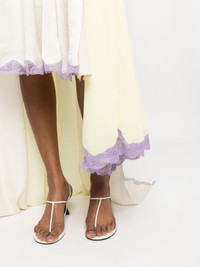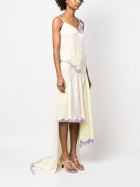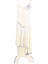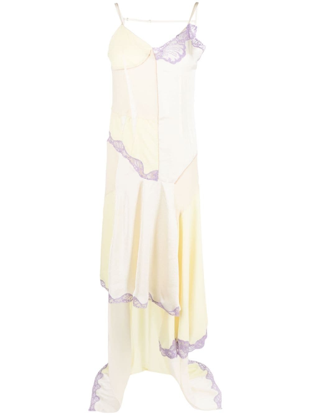 lace-detail draped dress Sportmax deconstructs the slip dress with this bold asymmetric piece. The lingerie-inspired design is detailed with delicate lace inlays and boning at the bodice, crafted from a patchwork of different materials. The back boasts a long panel that creates an elegant train. Highlights - Banana yellow - Draped design - Panelled design - Lace detailing - Sweetheart neck - Thin shoulder straps - Sleeveless - Mid-length - Scallop edge - Train Imported Composition Outer: Polyester 100%, Cotton 100% Lining: Polyester 100% SIZE & FIT Model measurements Height 5 ft 11 in(1.8 m) Bust/Chest 31.49 in(80 cm) Hips 35.82 in(91 cm) Waist 24.8 in(63 cm) FittingInformation Designed for a slim fit that sits just away from the body offering a close yet comfortable fit The internal slip sits just away from the body, offering a close yet comfortable fit Made from a midweight non-stretch fabric, this piece offers minimal elasticity when worn This piece fits true to size – take your usual size